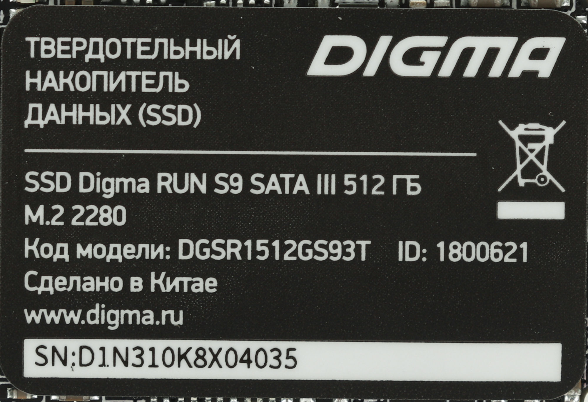 Накопитель SSD Digma SATA III 512Gb DGSR1512GS93T Run S9 M.2 2280