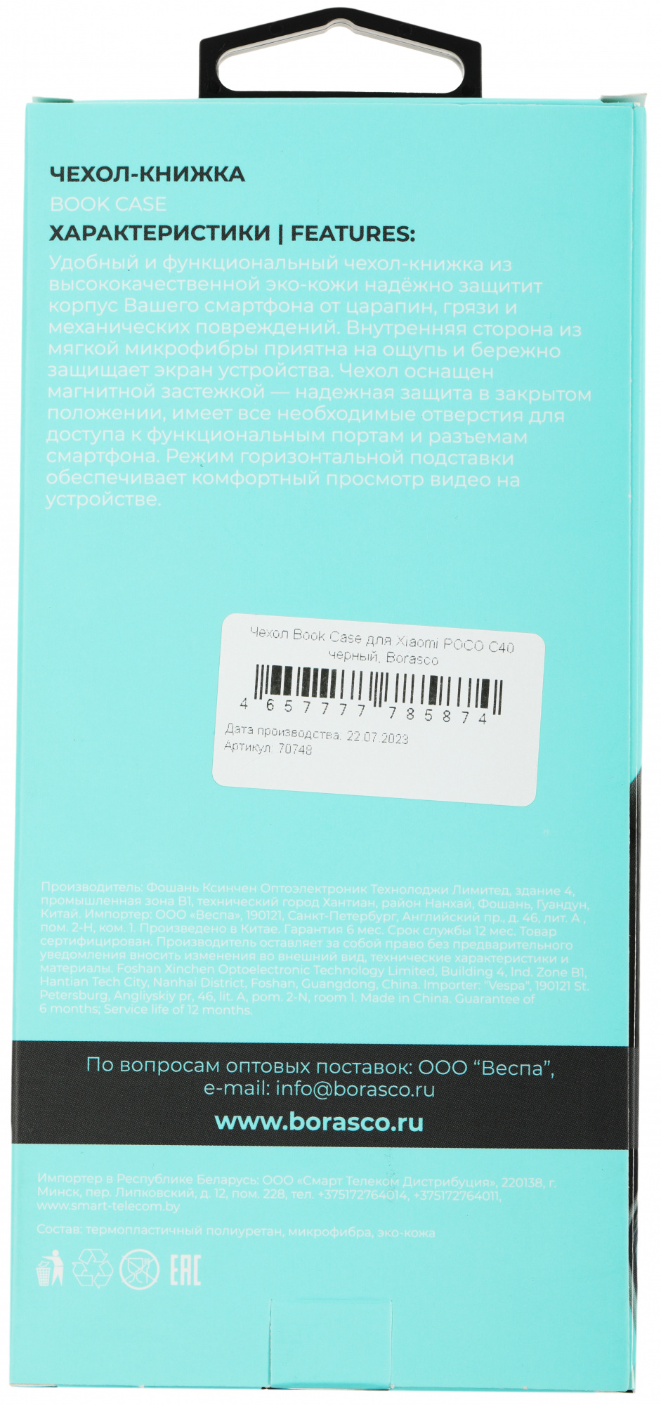 Чехол (флип-кейс) BoraSCO для Xiaomi Poco C40 черный (70748)