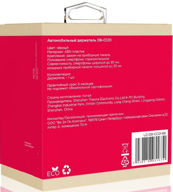 | PartNumber/Артикул Производителя | UZ-DB-CC01-BK |