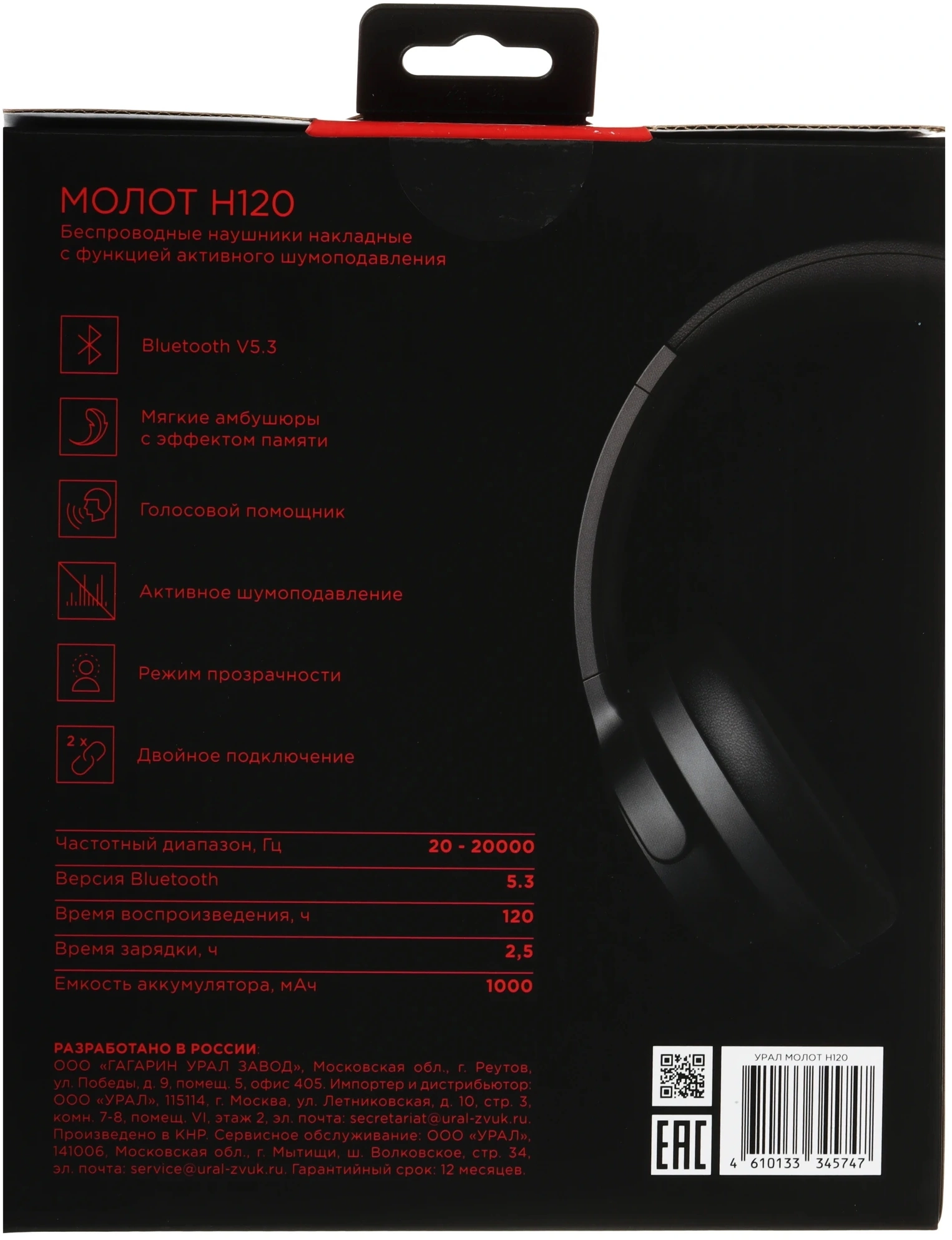 Наушники накладные Ural Молот Н120 черный беспроводные bluetooth накладные (УРАЛ МОЛОТ Н120)
