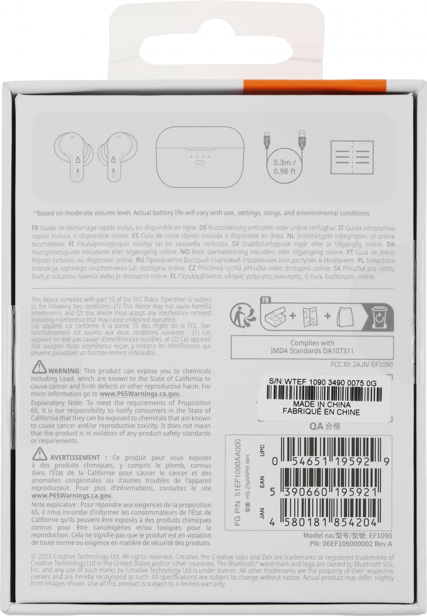 Гарнитура внутриканальные Creative Zen Air Pro белый беспроводные bluetooth в ушной раковине (51EF1090AA000)