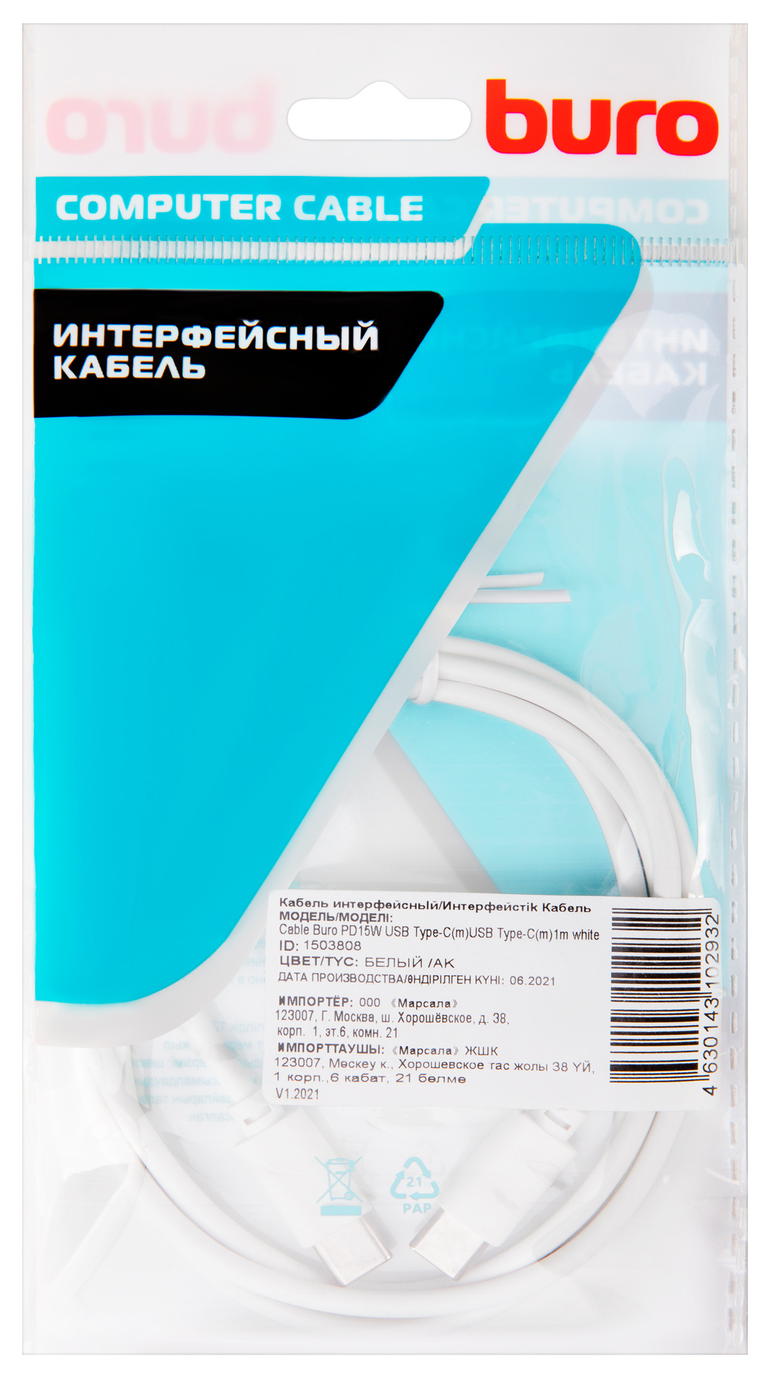 ---Кабель Buro PD15W USB Type-C (m) USB Type-C (m) 1м белыйКомпьютеры и комплектующиеПериферия и аксессуарыЦифровое фото и видеоСетевое оборудованиеРасходные материалыСмартфоны, планшеты и аксессуарыАвтомобильная техника и электроникаТелевизоры, аудио-видео техника и аксессуарыСистемы безопасности, СКС и инженерное оборудованиеСпорт, активный отдых, хоббиОфисная техникаКанцтовары и мебель