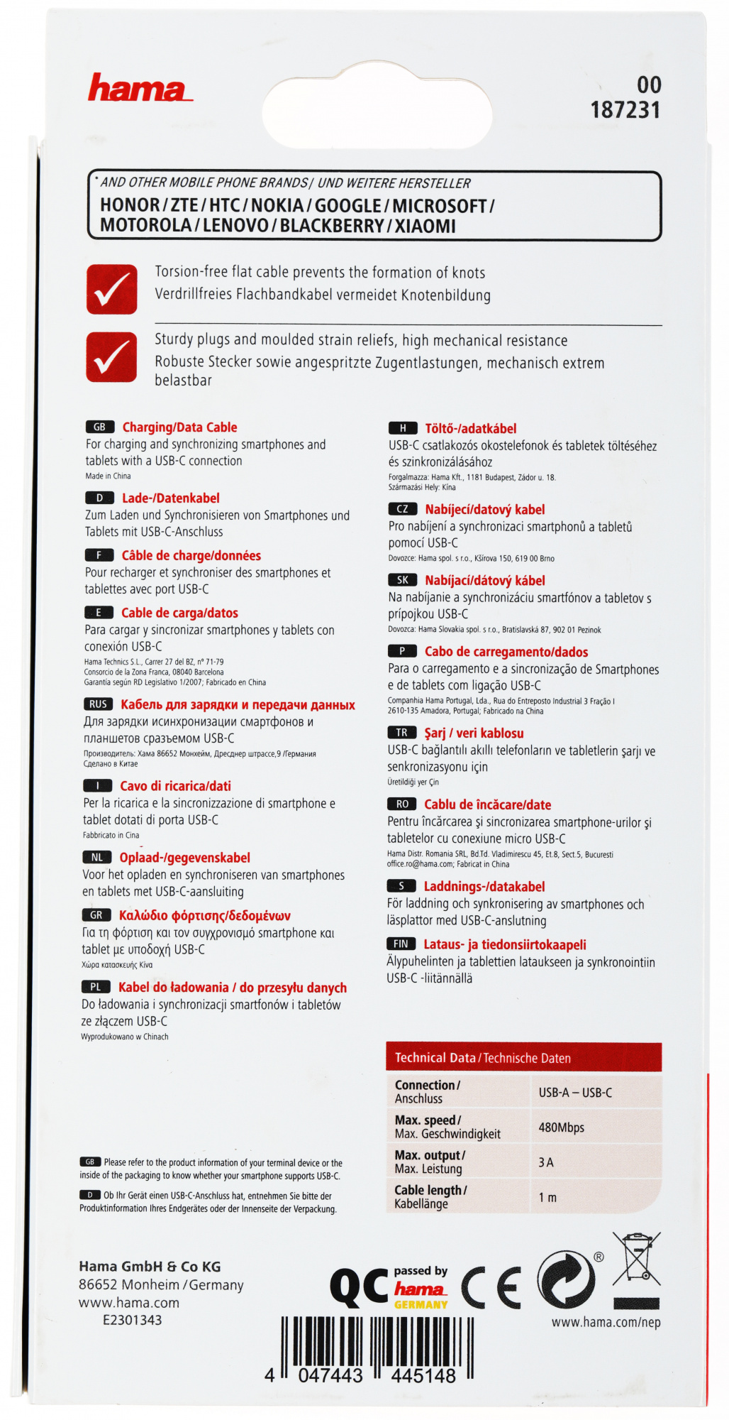| Описание | Кабель HAMA для передачи данных между персональными компьютерами и смартфонами, планшетами, MP3-плеерами и прочими устройствами с разъемом USB Type-C. |