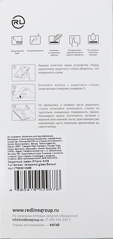 ---Защитное стекло для экрана Redline белый для Apple iPhone X/XS/11 Pro 1шт. (УТ000012296)Компьютеры и комплектующиеПериферия и аксессуарыЦифровое фото и видеоСетевое оборудованиеРасходные материалыСмартфоны, планшеты и аксессуарыАвтомобильная техника и электроникаТелевизоры, аудио-видео техника и аксессуарыСистемы безопасности, СКС и инженерное оборудованиеСпорт, активный отдых, хоббиОфисная техникаКанцтовары и мебель