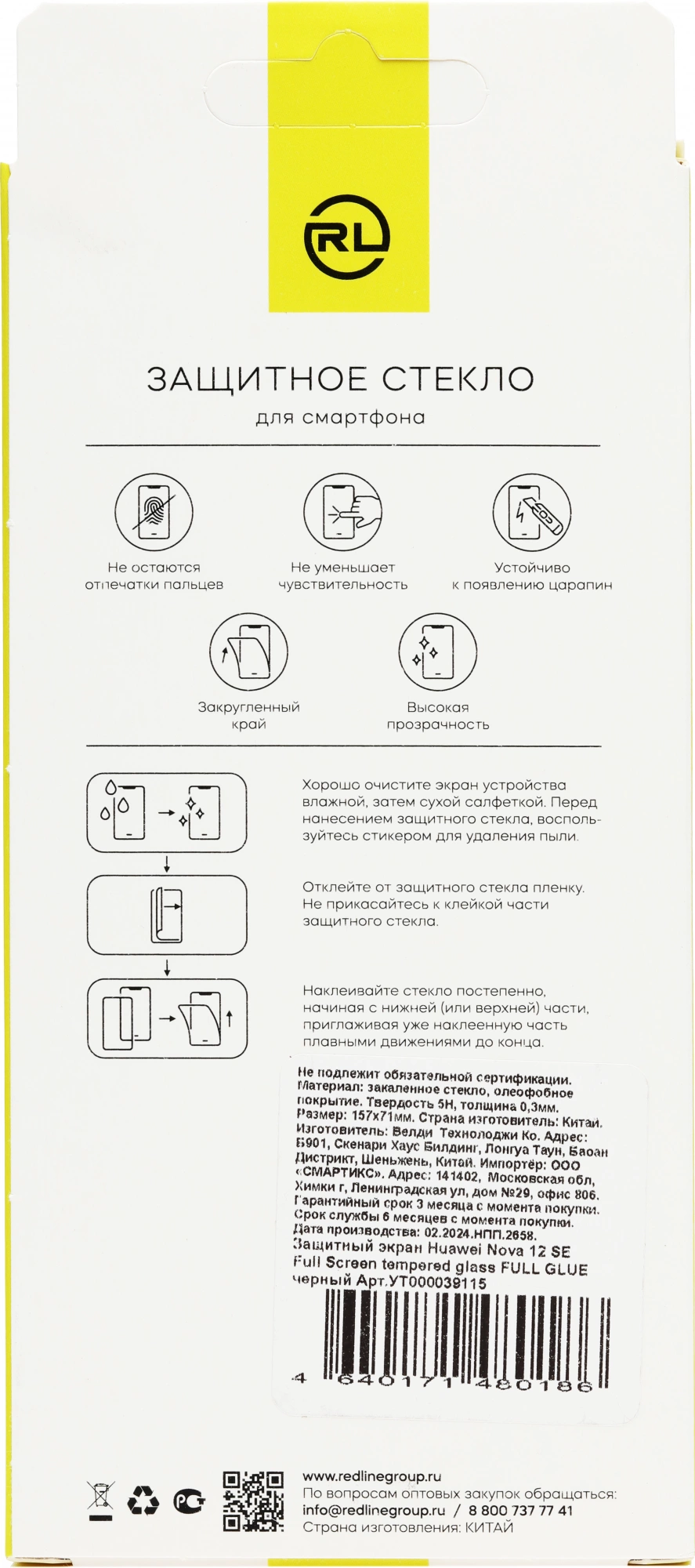 Защитное стекло для экрана Redline черный для Huawei Nova 12 SE 2.5D 1шт. (УТ000039115)