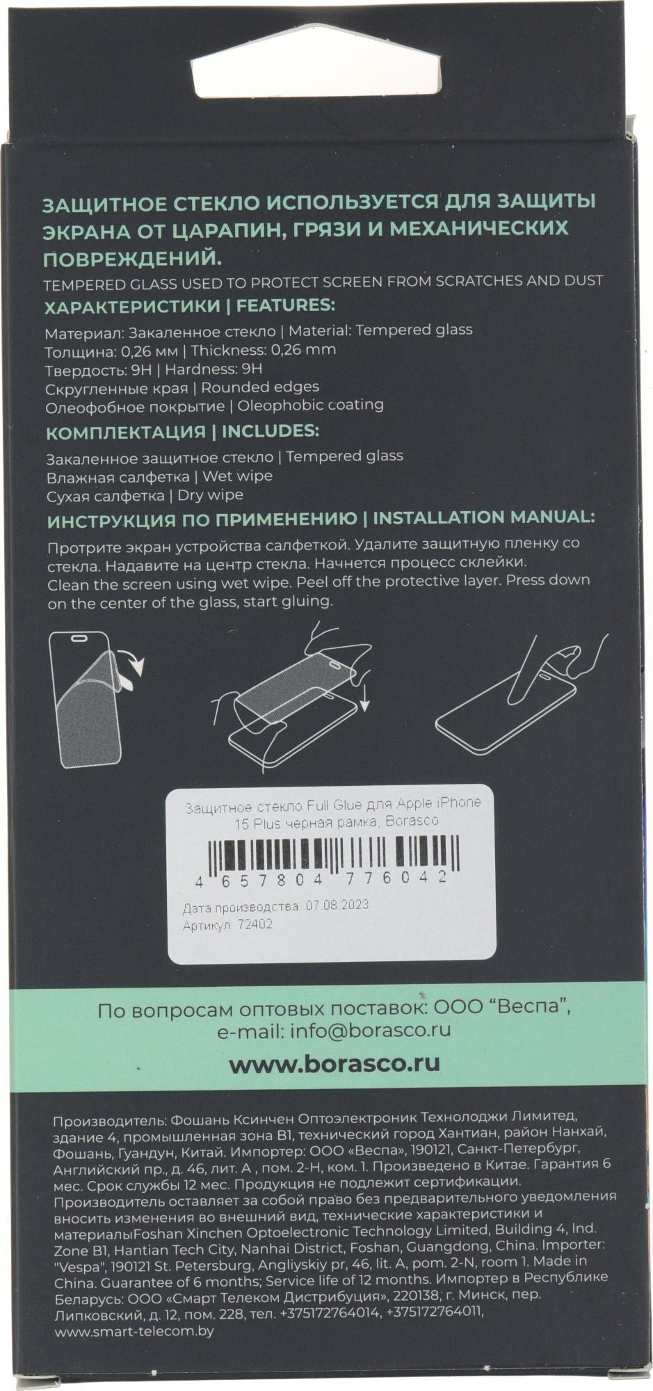 | Описание | Закалённое стекло Borasco предназначено для защиты экрана при падении, от царапин и потёртостей, олеофобное покрытие стекла передаёт приятные тактильные ощущения. |