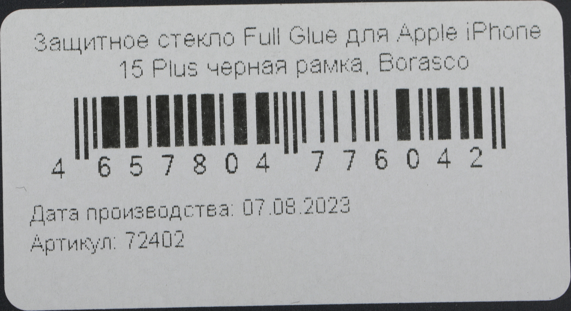 Защитное стекло для экрана BoraSCO прозрачный для Apple iPhone 15 Plus 2.5D антиблик. 1шт. (72402)
