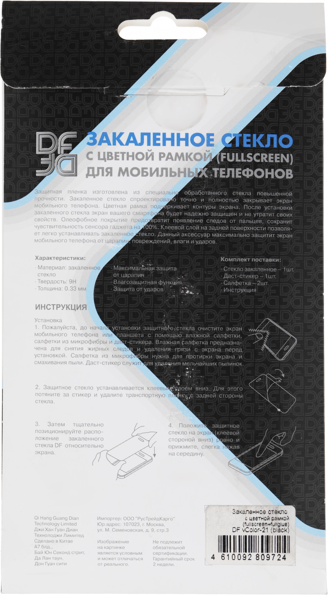 | Комплектация | Стекло закаленное - 1шт. Даст-стикер - 1шт. Салфетка - 2шт. Инструкция. |