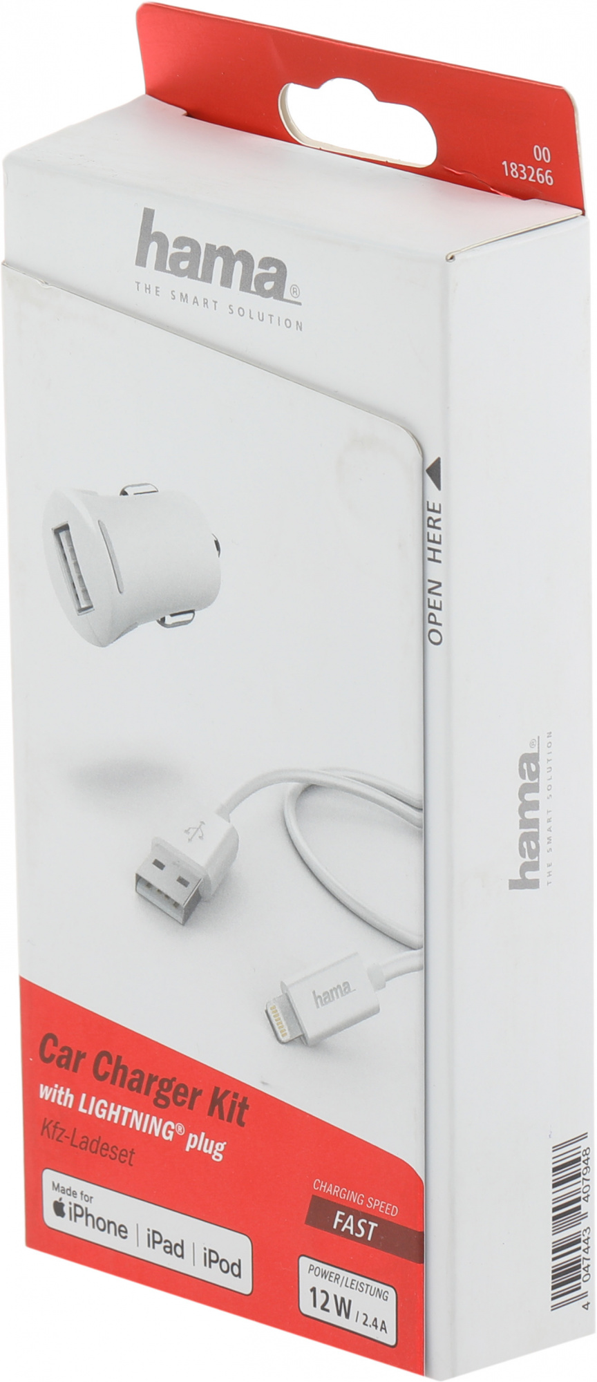 Автомобильное зар./устр. Hama H-183266 12W 2.4A USB для Apple белый (00183266)