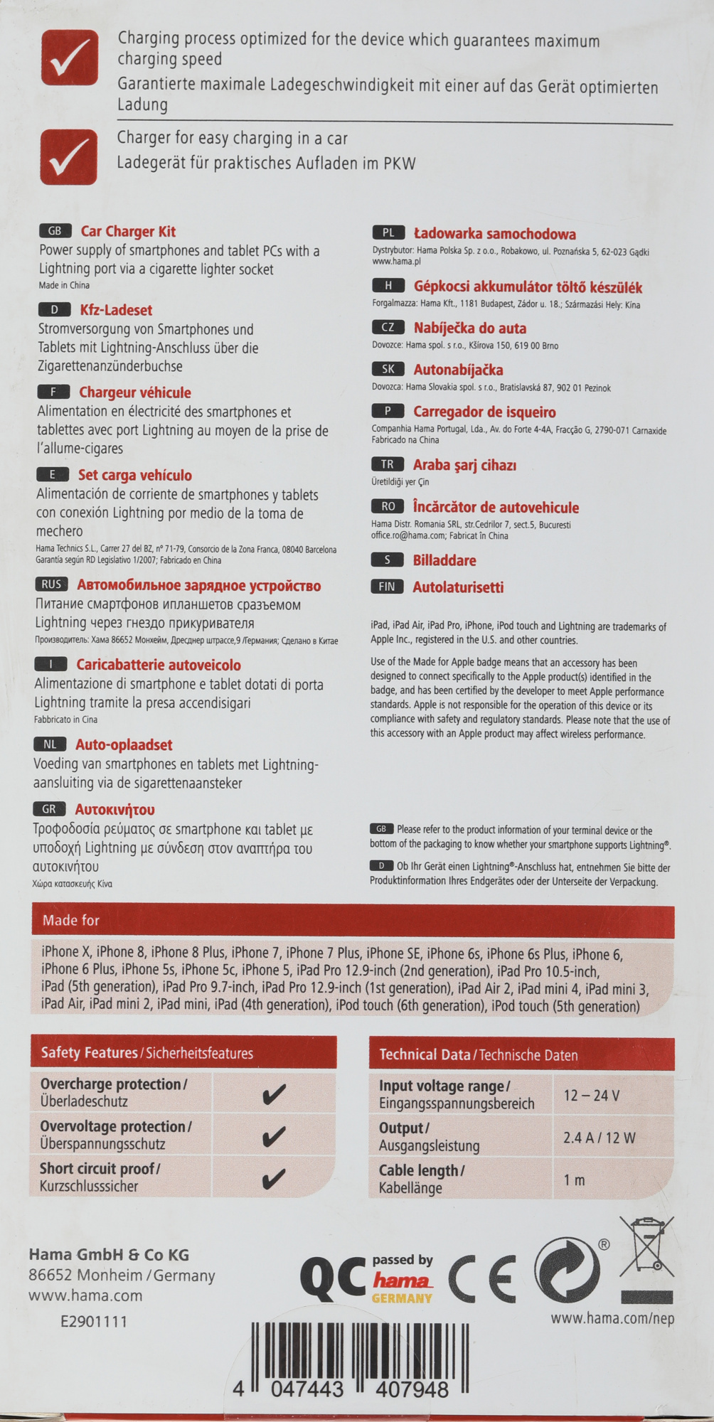 | Описание | Автомобильное зарядное устройство от прикуривателя. Максимальная выходная мощность 12 Вт |