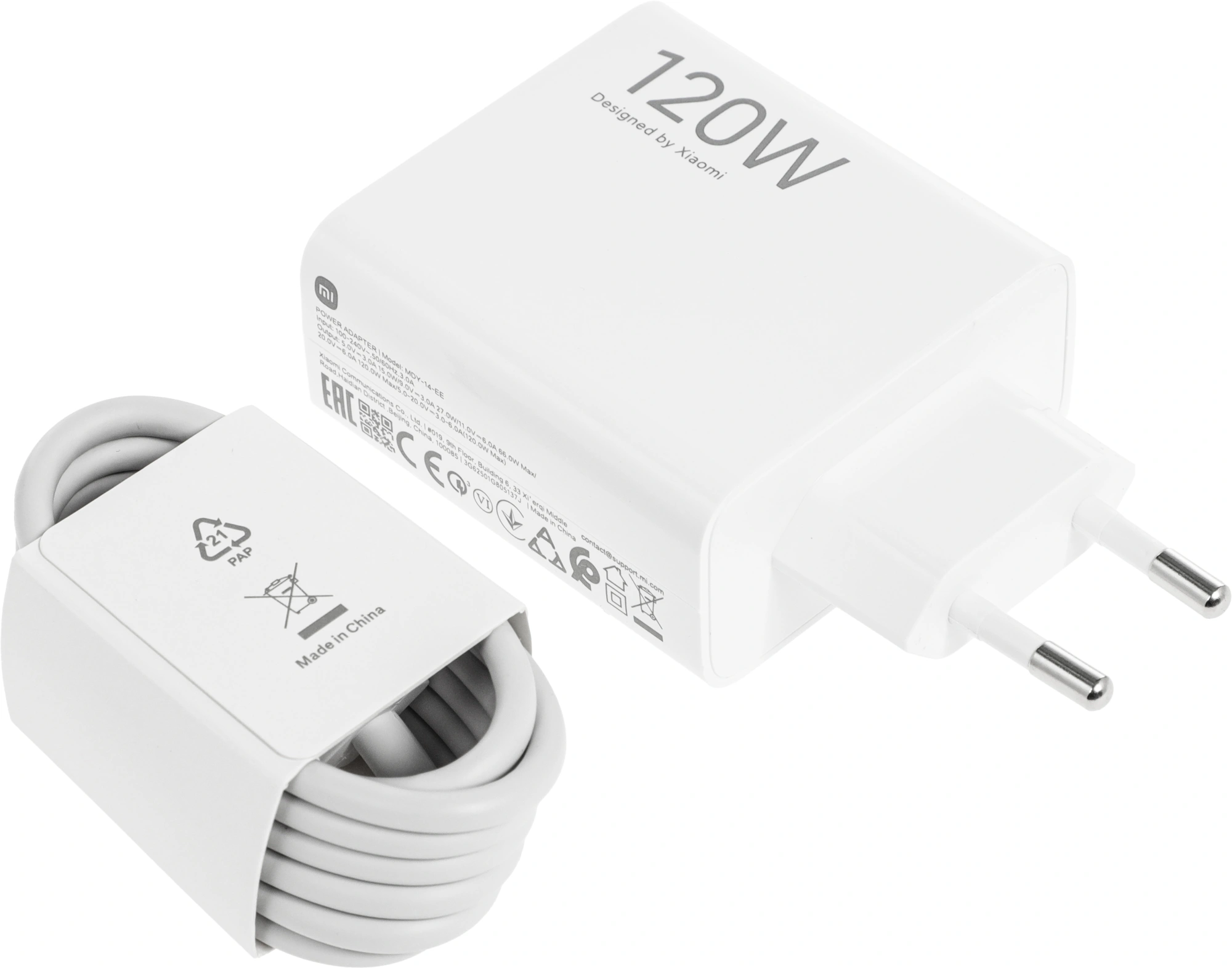 Сетевое зар./устр. Xiaomi 120W HyperCharge Combo (Type-A) EU 120W 6A (PD+QC) USB универсальное белый (BHR9462EU)