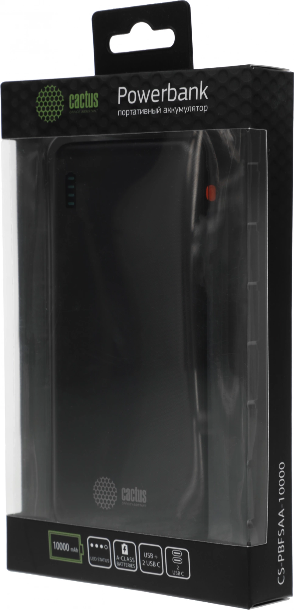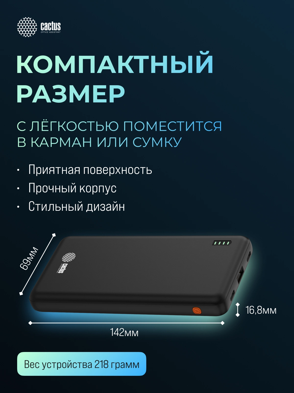 Мобильный аккумулятор Cactus CS-PBFSAA-10000 10000mAh 4.5A USB-A/2xUSB-C черный