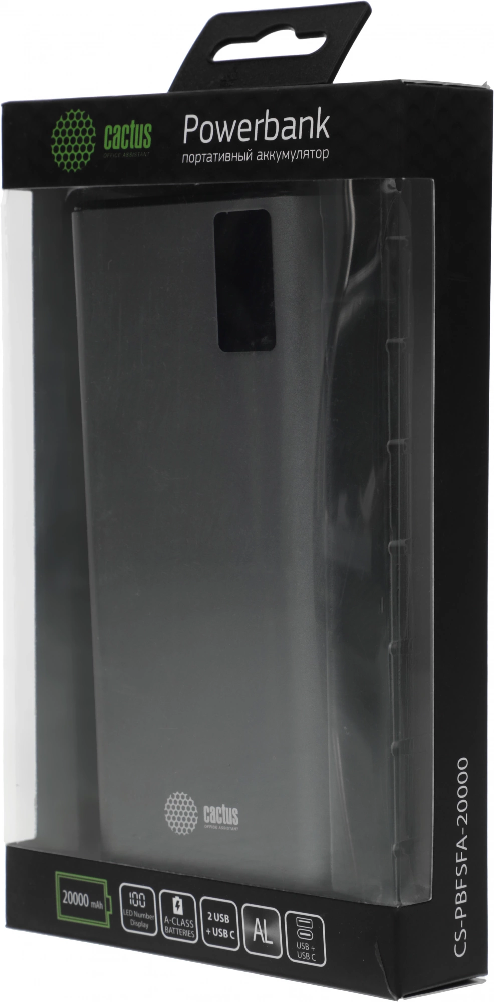 Мобильный аккумулятор Cactus CS-PBFSFA-20000 20000mAh 4.5A 2xUSB-A/USB-C серый