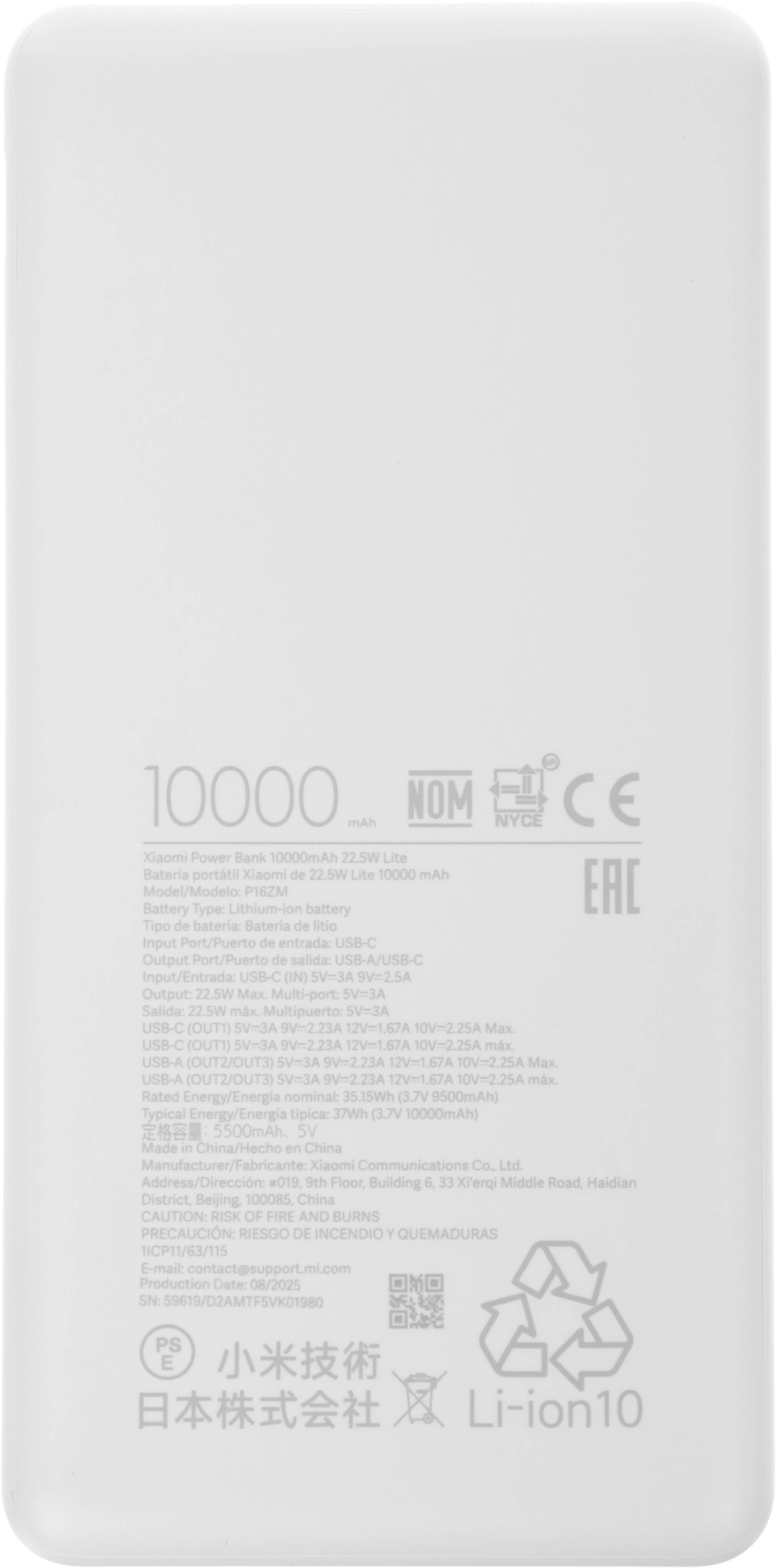 Мобильный аккумулятор Xiaomi 10000mAh 35.15W 5A 2xUSB-A/USB-C серый (BHR9350GL)