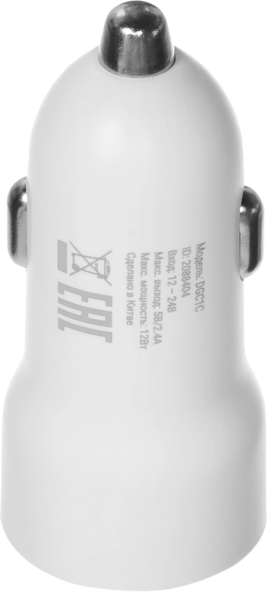Автомобильное зар./устр. Digma DGC1С 12W 2.4A 2xUSB белый (DGC1C2LX22WH)