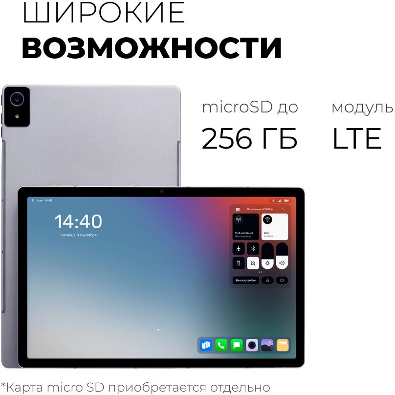 Планшет Kvadra TS11.02-2111-21 (2.4) 8C RAM6Gb ROM128Gb 10.95" IPS 2000x1200 4G 1Sim без операционной системы серебристый 13Mpix 5Mpix BT WiFi microSD 256Gb 9000mAh 8hr