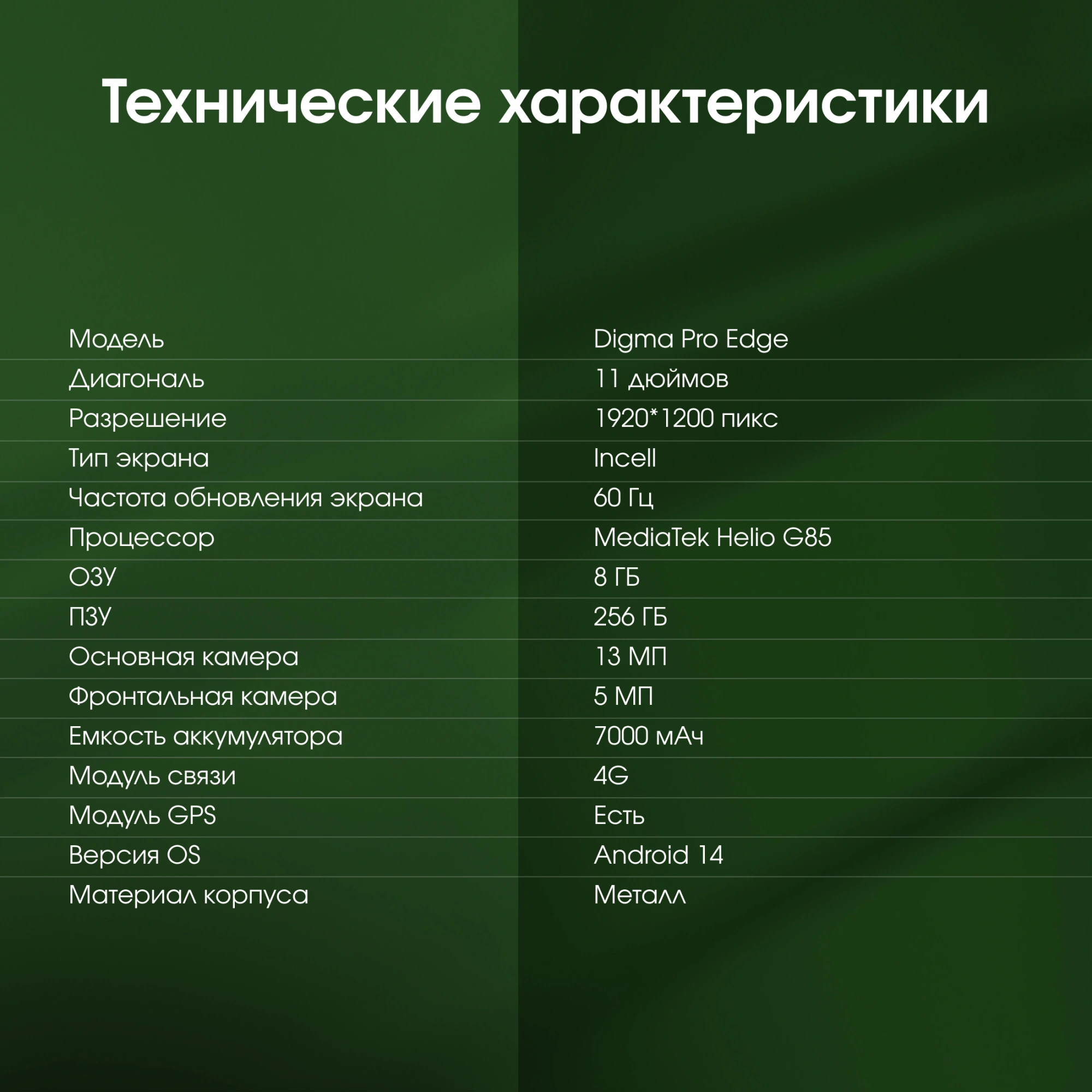 Планшет Digma Pro Edge G85 (2.0) 8C RAM8Gb ROM256Gb 11" In-Cell 1920x1200 4G 2Sim Android 14 синий 13Mpix 5Mpix BT WiFi microSD 256Gb 7000mAh