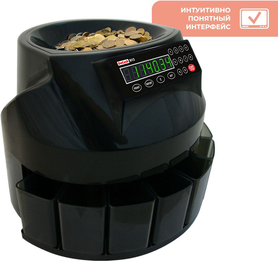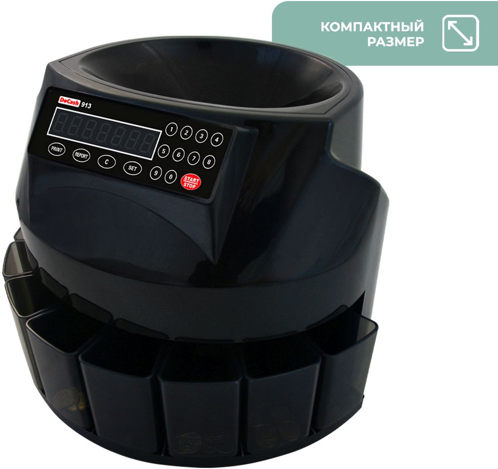 | Особенности | Компактный и эргономичный дизайн. Варьируемый размер фасовки до 999 монет. Сохранение данных пересчета в памяти. Отображение на 7-сегментном светодиодном дисплее суммы, количества подсчитанных монет каждого номинала. Автоматическая остановка при опустошении загрузочного бункера. Низкий уровень шума |