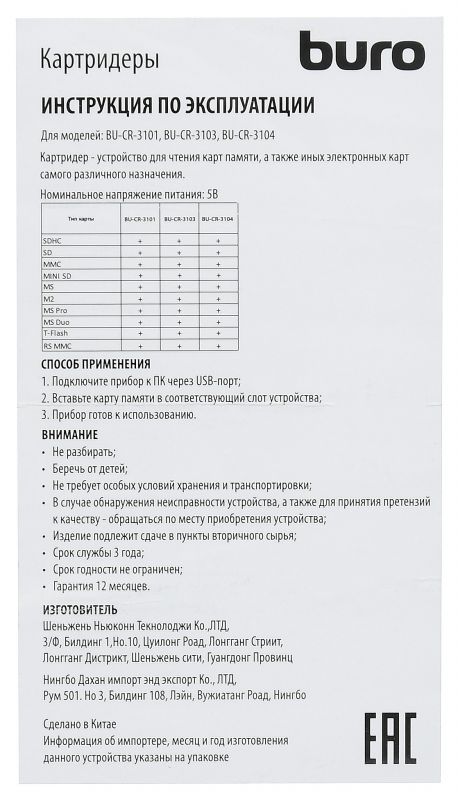 | PartNumber/Артикул Производителя | BU-CR-3103 |