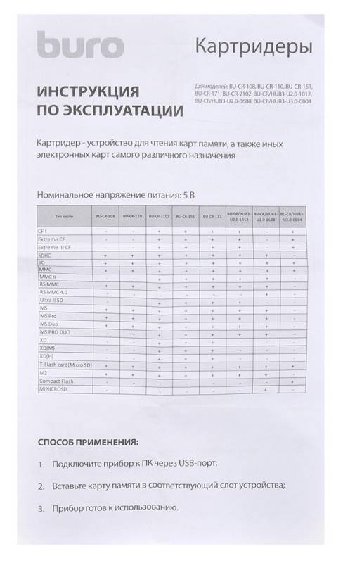 | Тип для названия | Картридер |