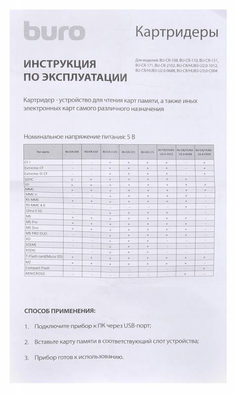 Устройство чтения карт памяти USB2.0 Buro BU-CR-110 черный