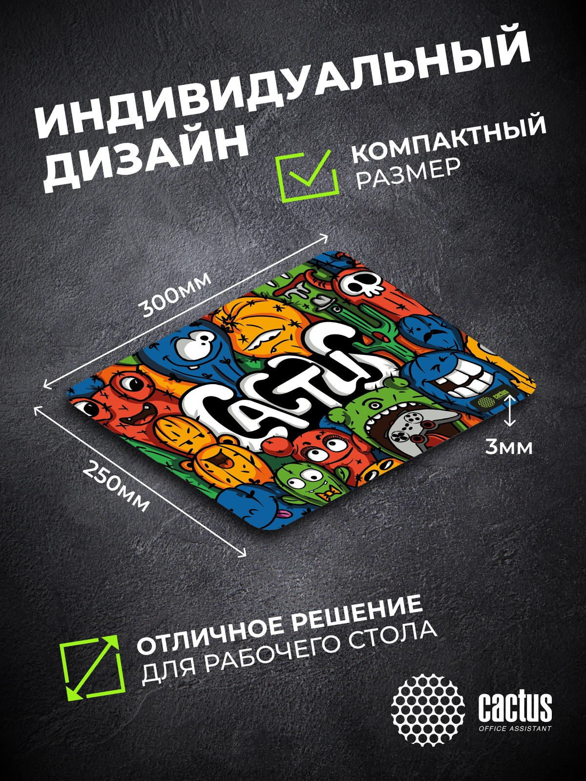 Коврик для мыши Cactus Colorful Cacti 300x250x3мм (CS-MPC-D03M)