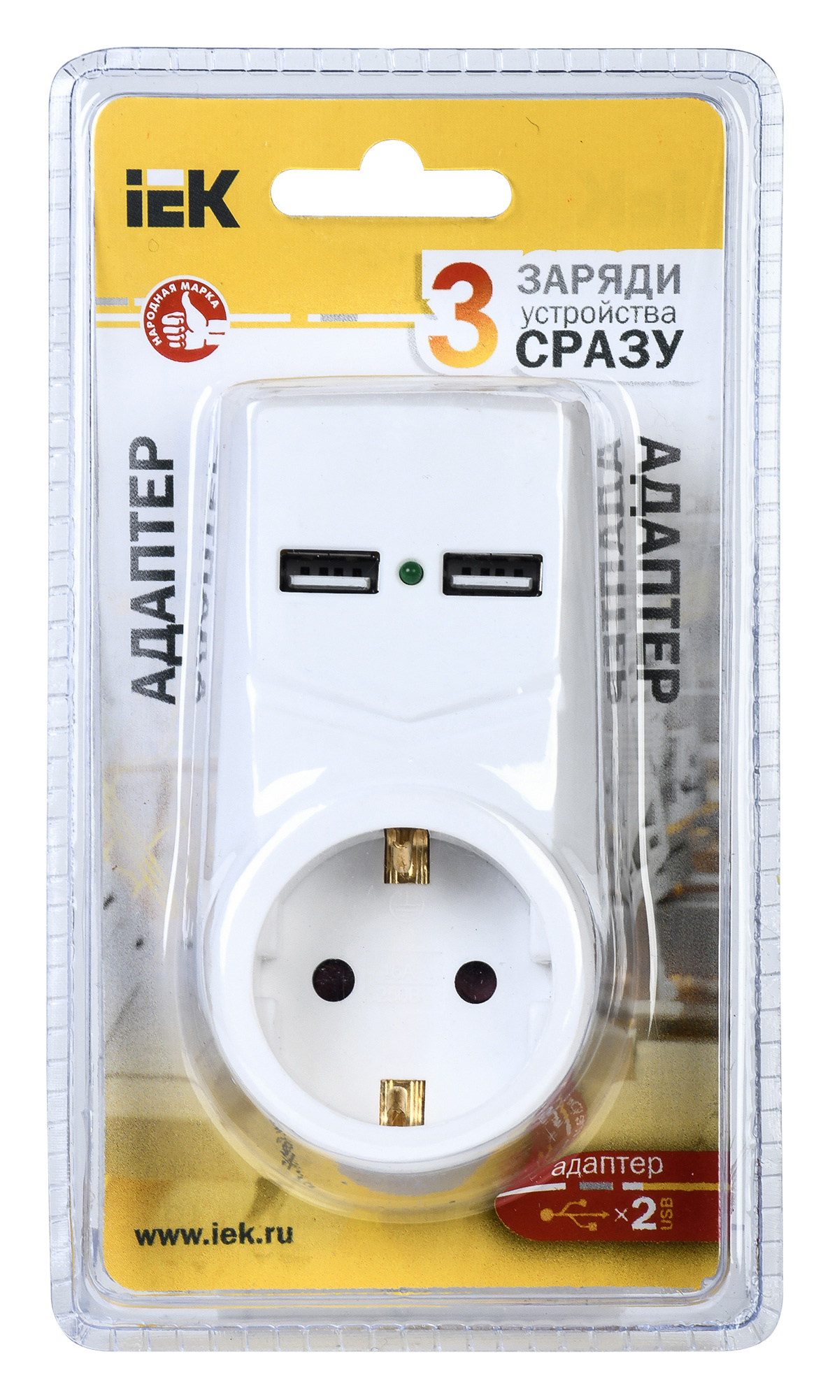 Адаптер-переходник IEK Т-01/01 (1 розетка) белый (блистер)