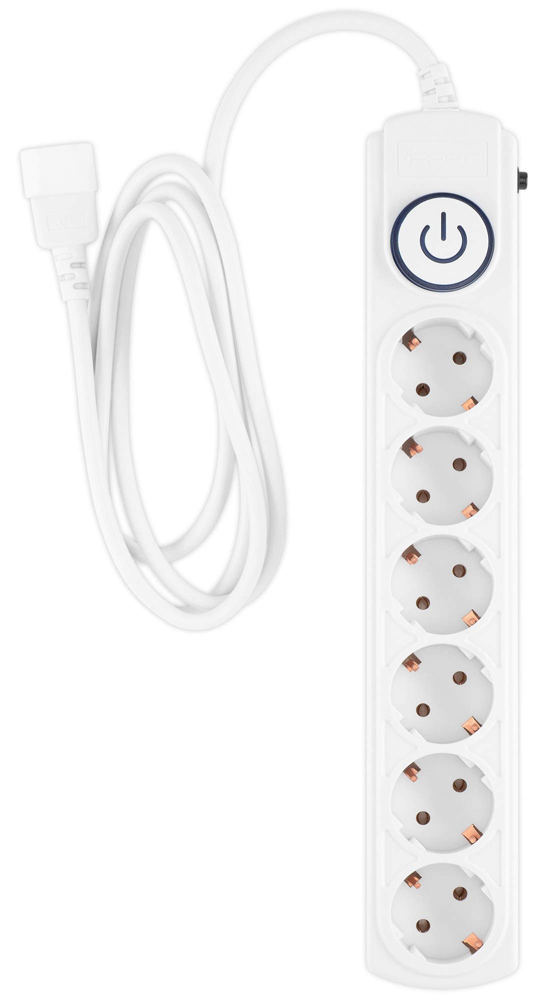 | Особенности | 6 евророзеток с заземлением. Входная вилка IEC 320 (для подключения к ИБП). Защита от перегрузки. Защита от импульсов высокого напряжения. Защита от перетирания провода в месте входа в корпус фильтра. Ударопрочный негорючий корпус. Кнопка питания с индикатором сети. |