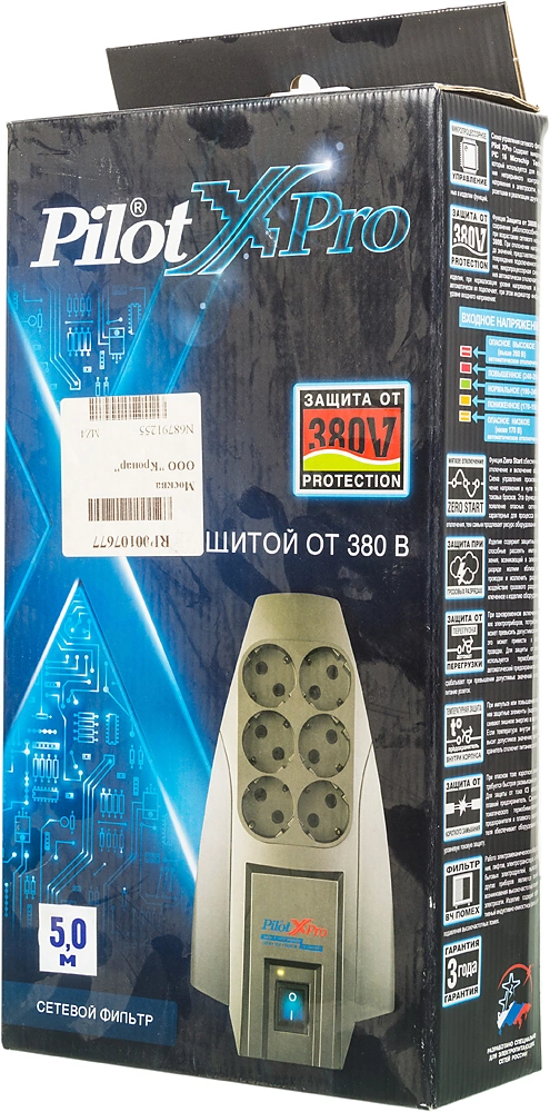 Сетевой фильтр Pilot X-Pro 5м (6 розеток) серый (коробка)