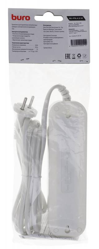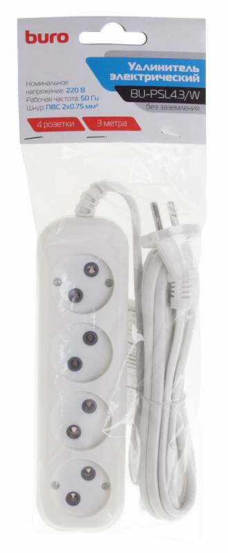 Сетевой удлинитель Buro BU-PSL4.3/W 3м (4 розетки) белый (пакет ПЭ) (10 шт. в упаковке)