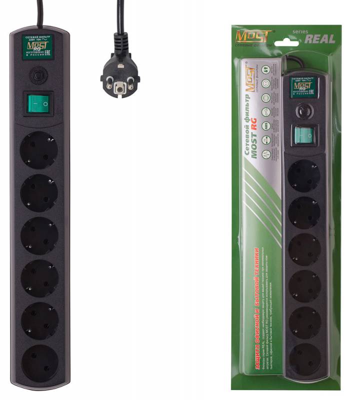 Сетевой фильтр Most RG 5м (6 розеток) черный (коробка)