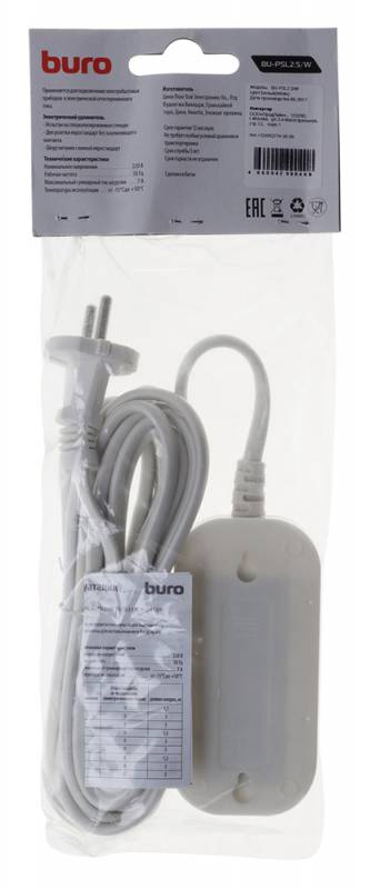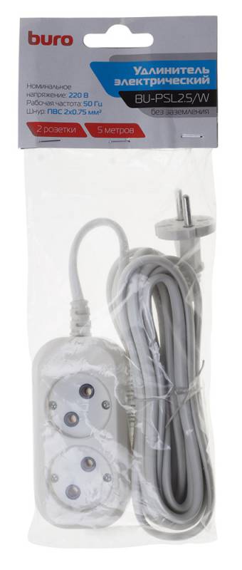 Сетевой удлинитель Buro BU-PSL2.5/W 5м (2 розетки) белый (пакет ПЭ) (10 шт. в упаковке)