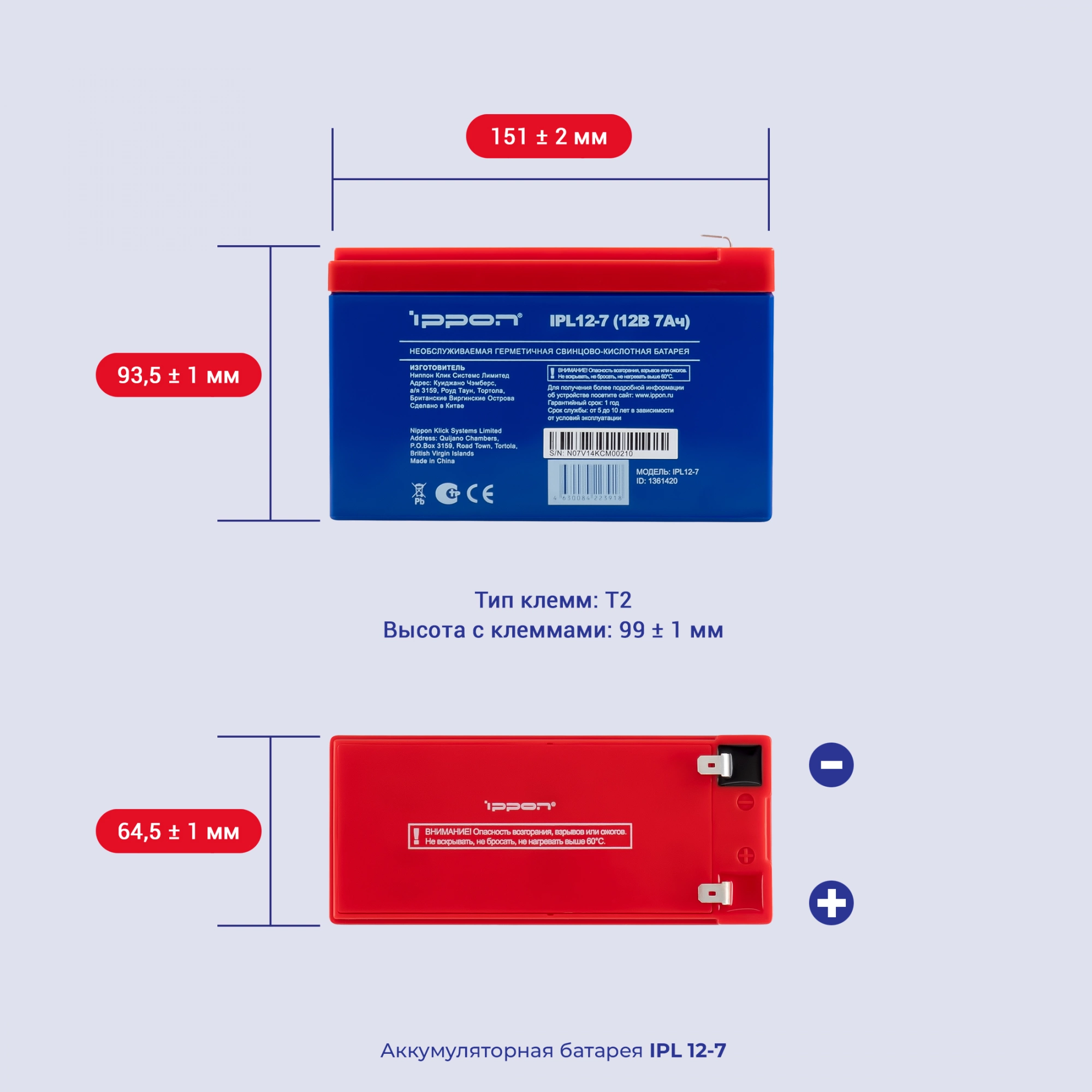 | Высота с клеммами | 99+/-1 |