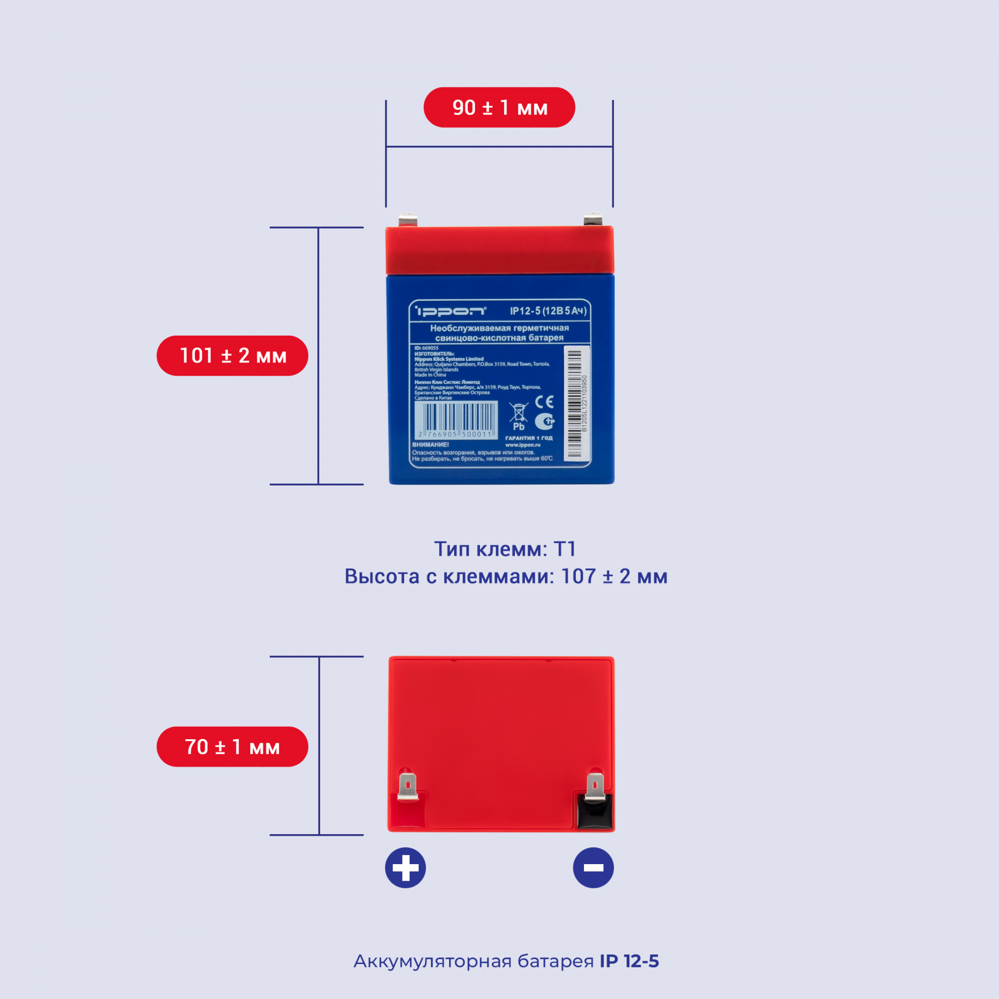 | Высота с клеммами | 107+/-2 |