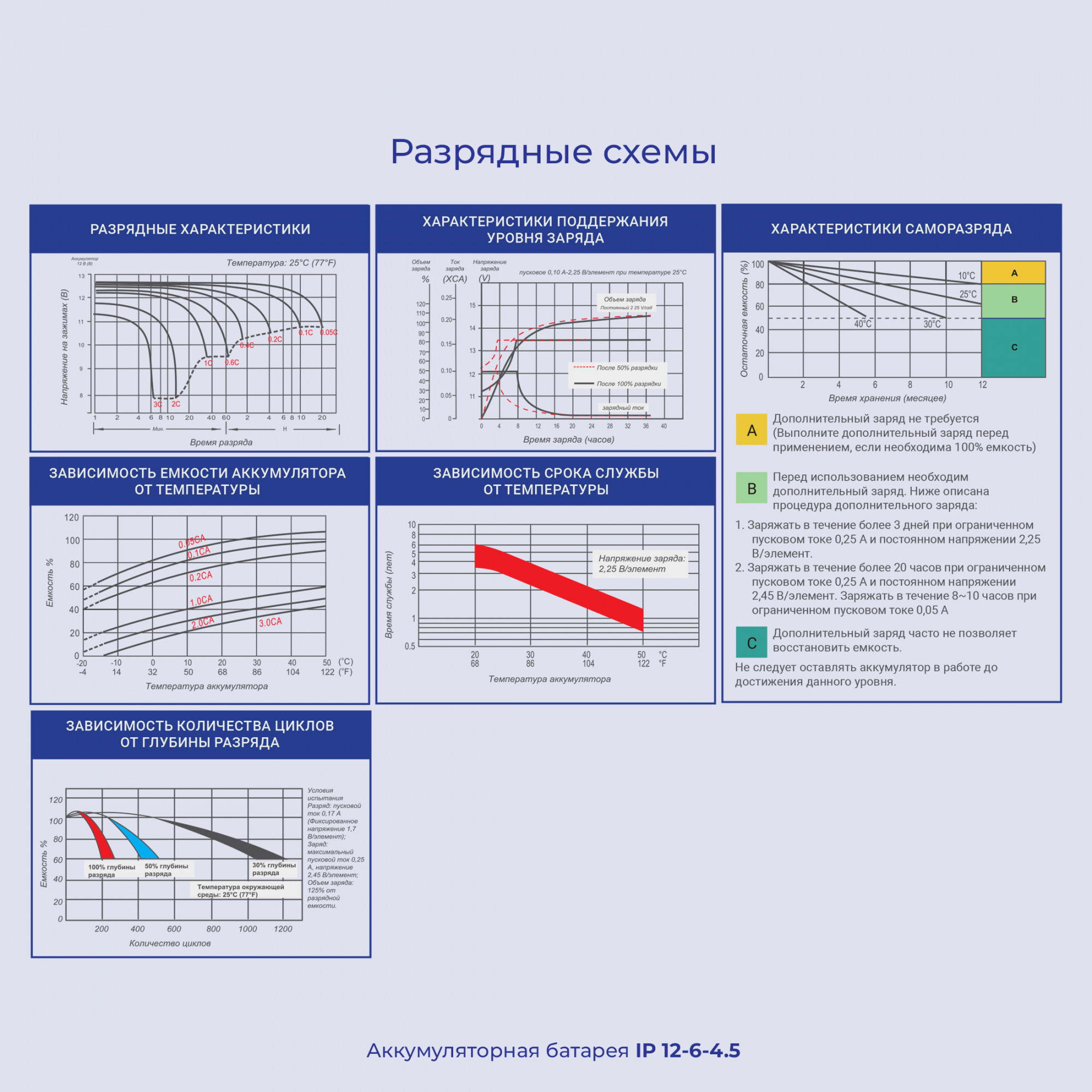 | Саморазрядка | Батареи IPPON разрешается хранить без подзарядки не более 6 месяцев при температуре 25 C (77 F). При повышении температуры срок хранения без подзарядки уменьшается |