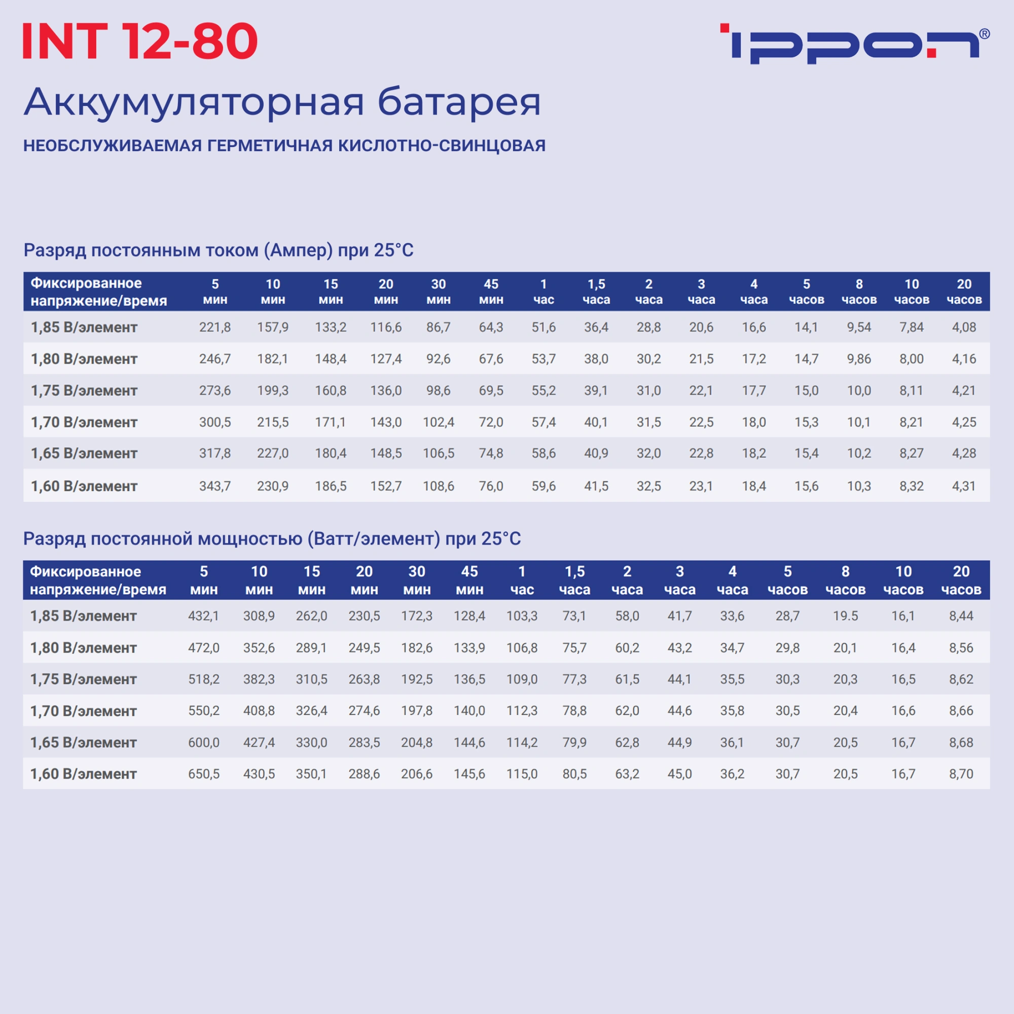 Батарея для ИБП Ippon INT12-80 12В 80Ач