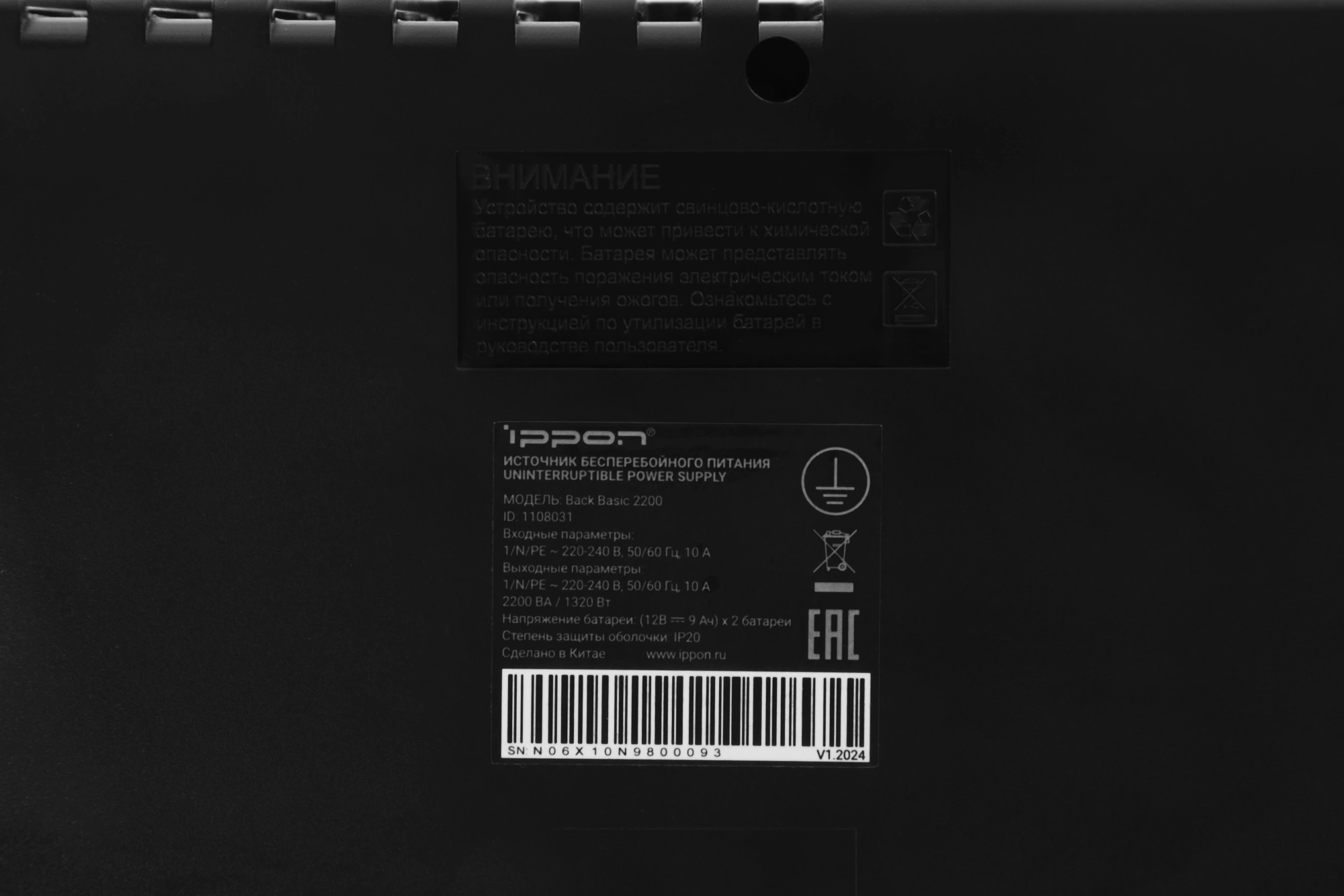 | Виды защиты | защита сети (порт RJ-45), от глубокого разряда батареи, от импульсных помех, от короткого замыкания, от перегрузки |