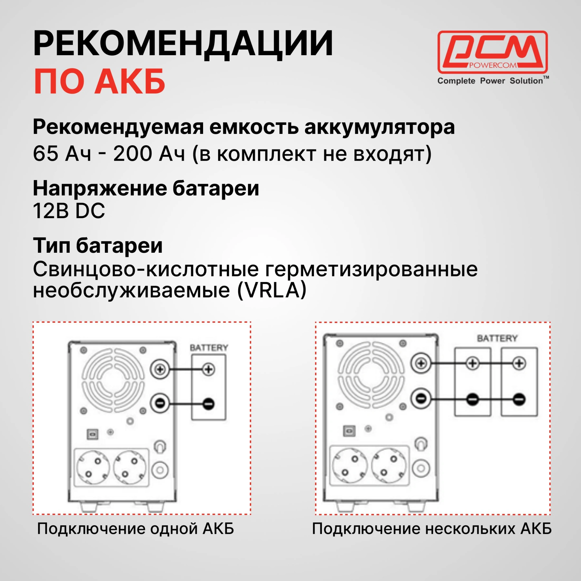 | Тип аккумулятора | Необслуживаемый кислотно-свинцовый (приобретается дополнительно) |