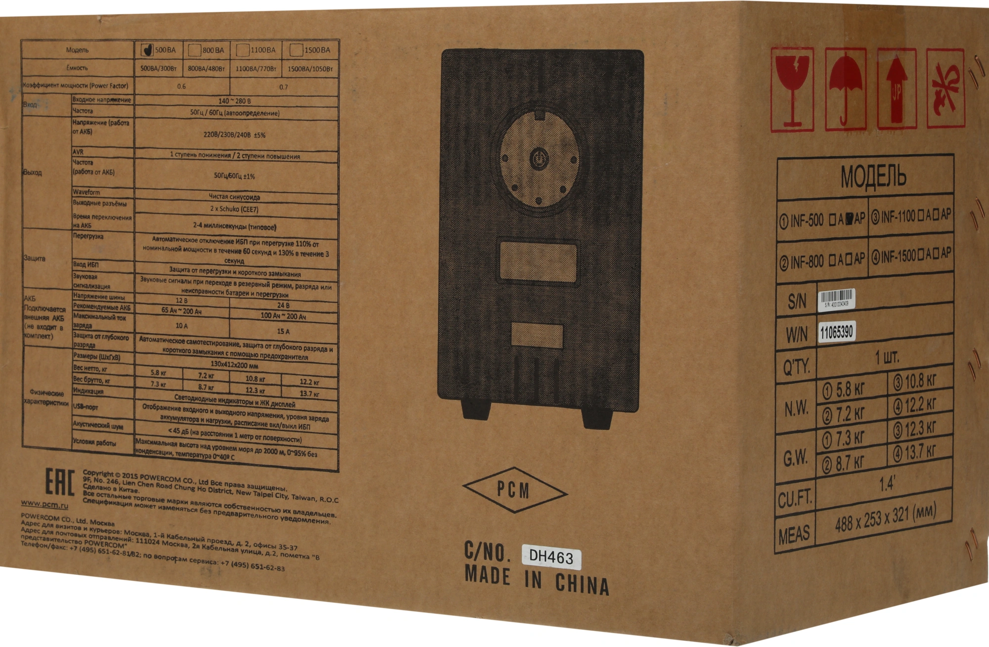 Источник бесперебойного питания Powercom Infinity INF-500 300Вт 500ВА черный