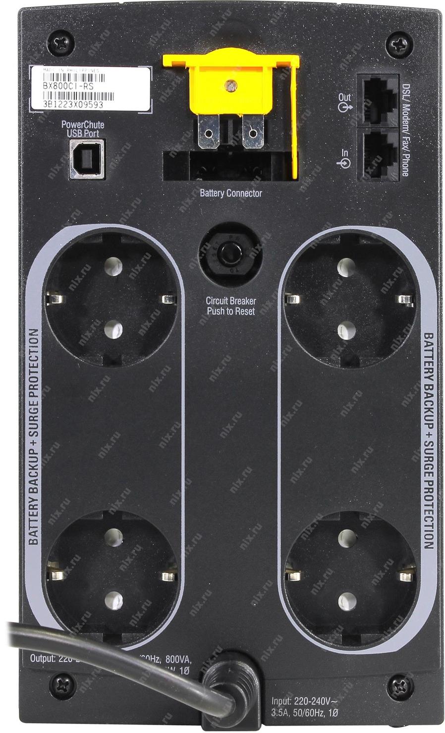 Источник бесперебойного питания APC Back-UPS BX800CI-RS 480Вт 800ВА черный