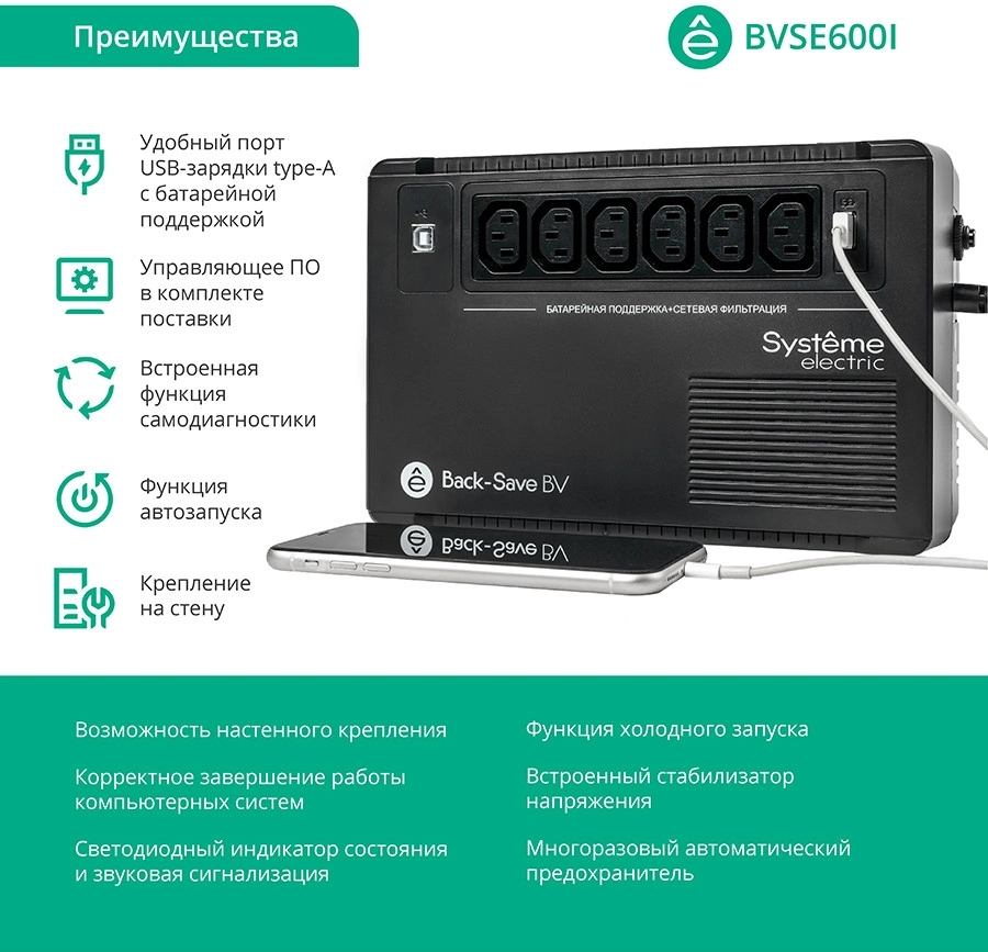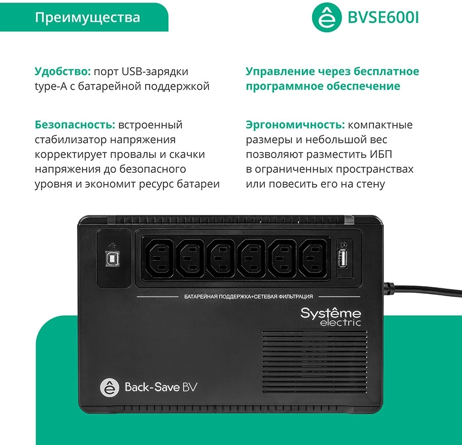 Источник бесперебойного питания Systeme Electriс BV BVSE600I 360Вт 600ВА черный