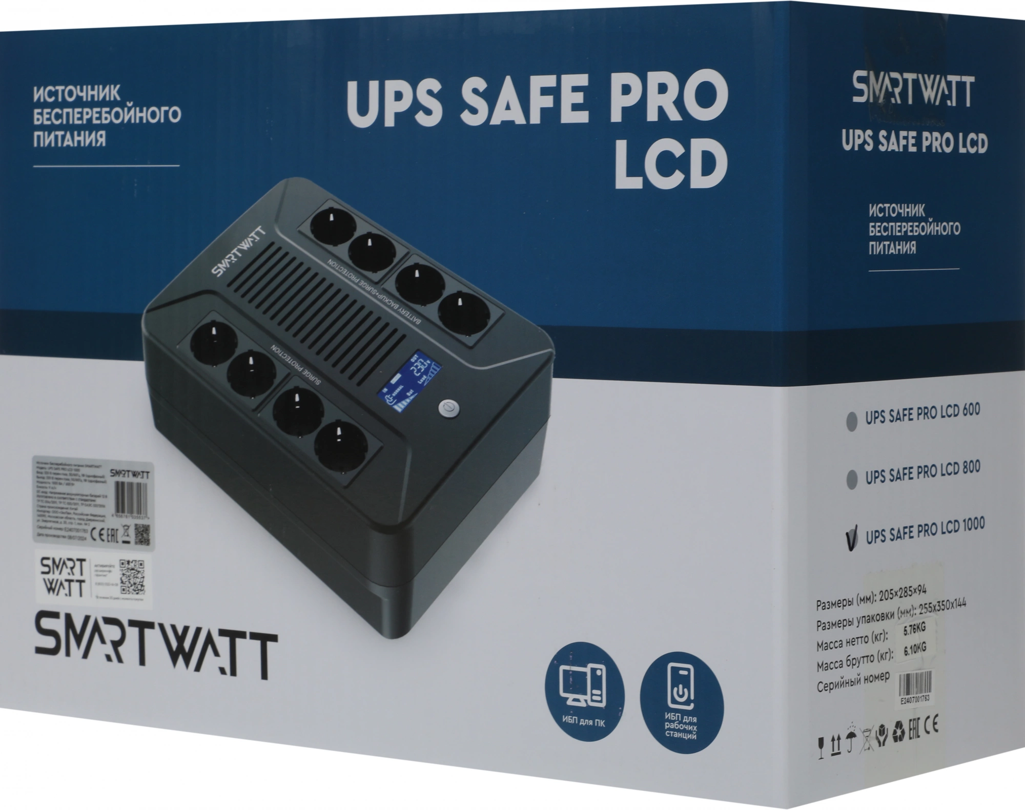 Источник бесперебойного питания Smartwatt SAFE PRO LCD 1000 600Вт 1000ВА черный
