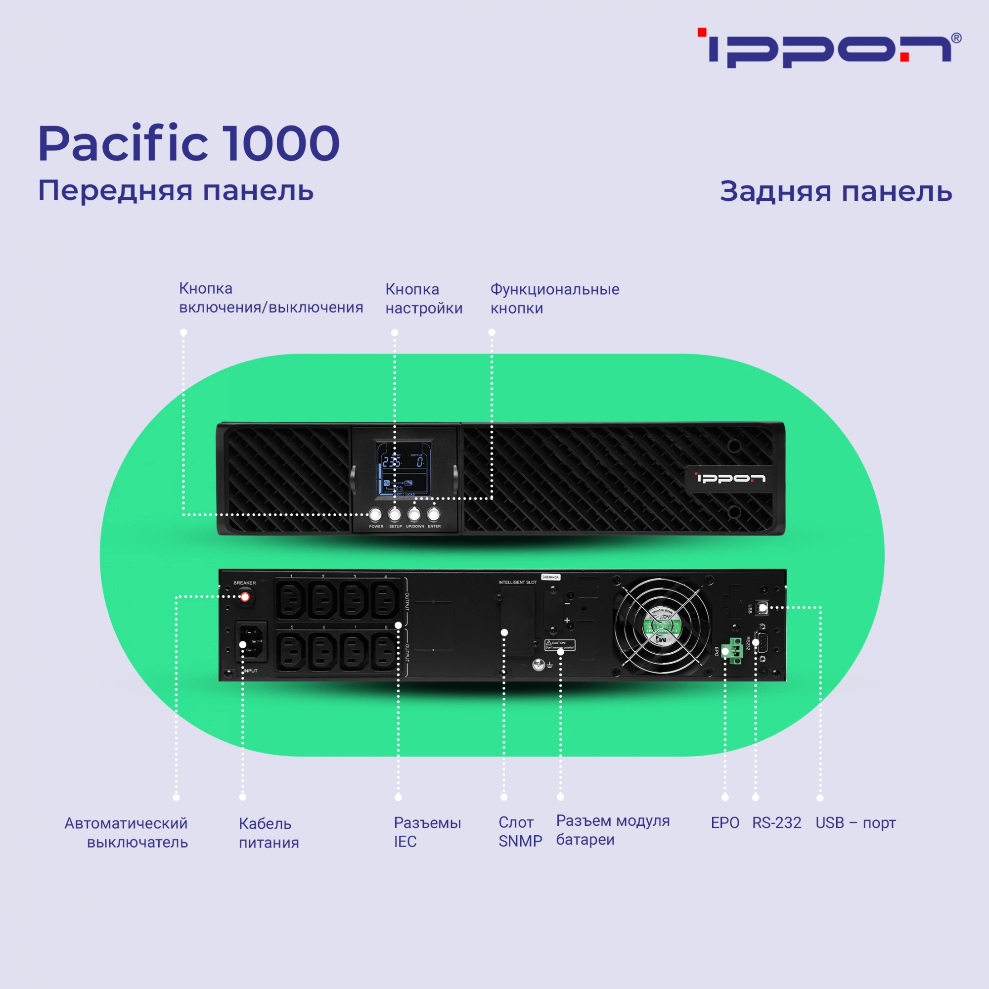 Источник бесперебойного питания Ippon Pacific 1000 900Вт 1000ВА черный