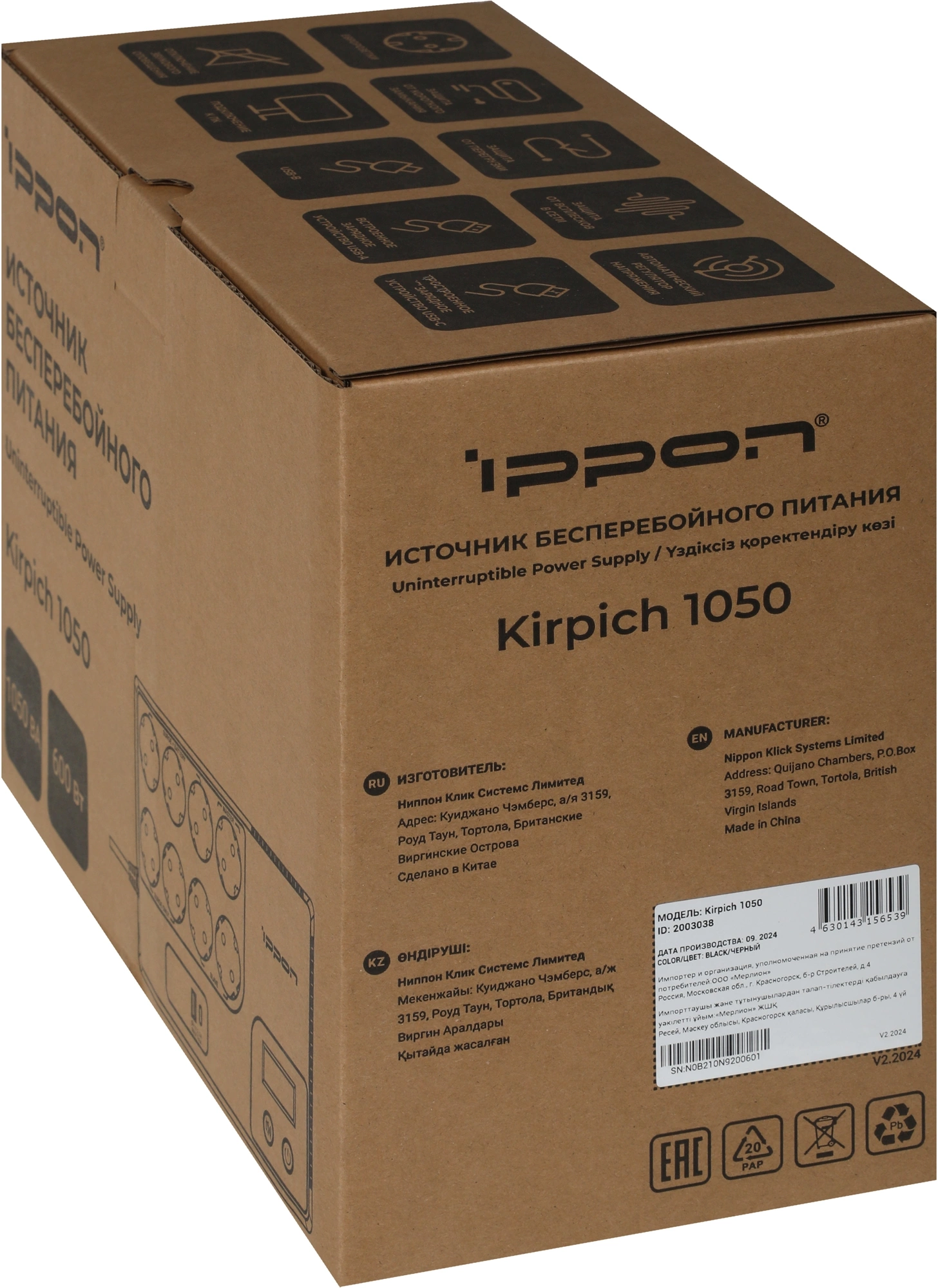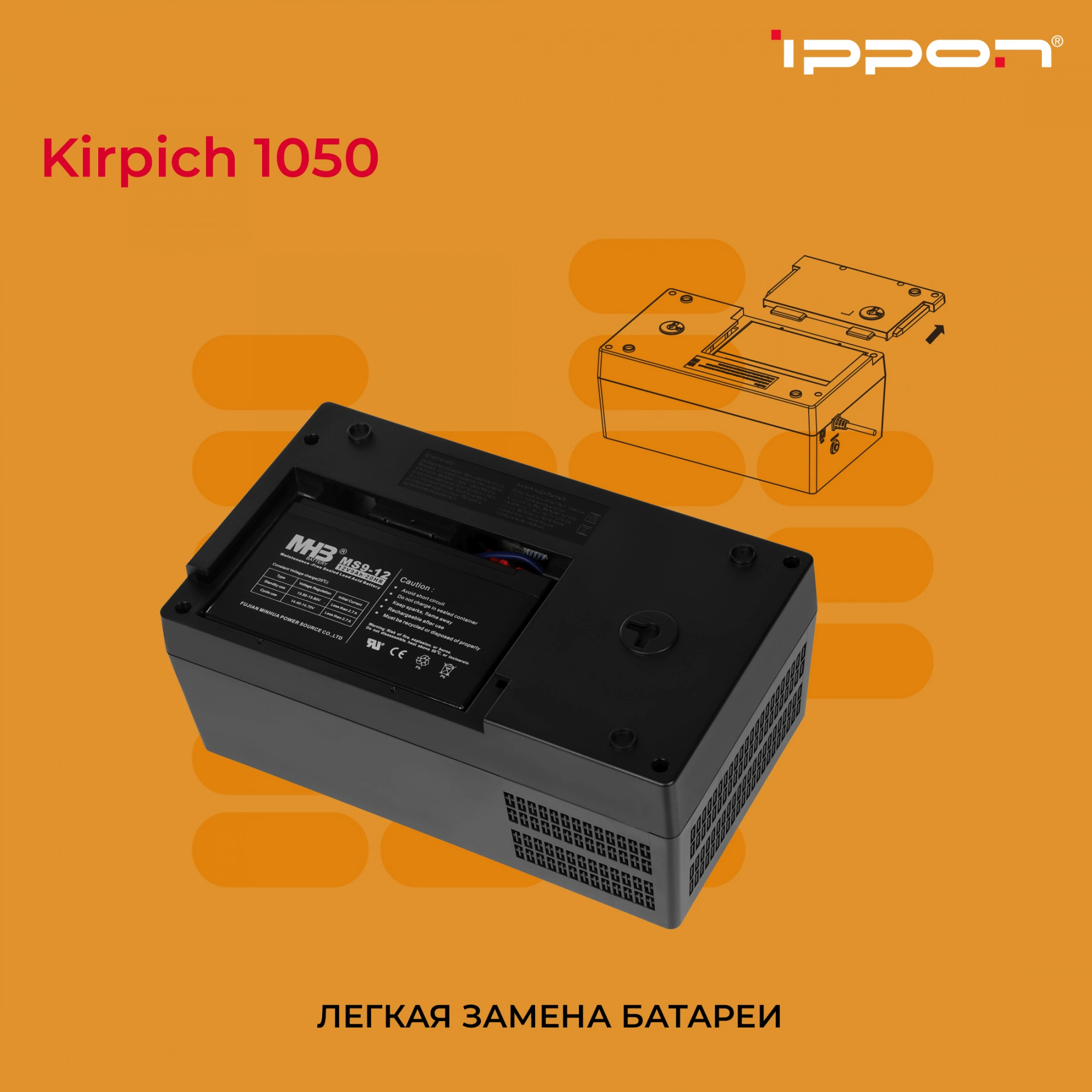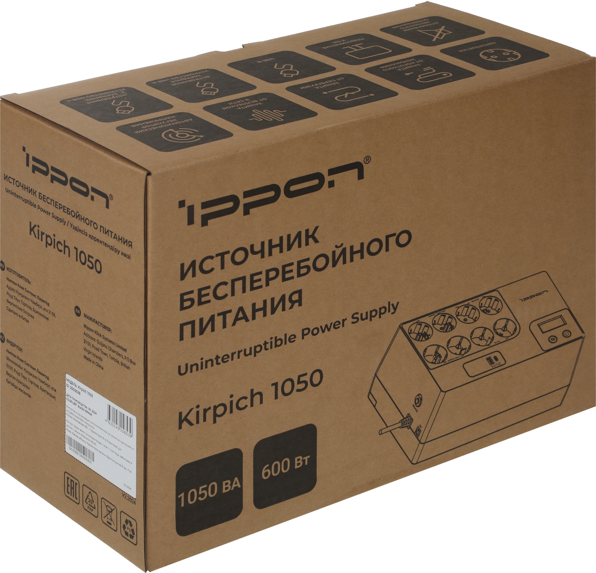 Источник бесперебойного питания Ippon Kirpich 1050 600Вт 1050ВА черный
