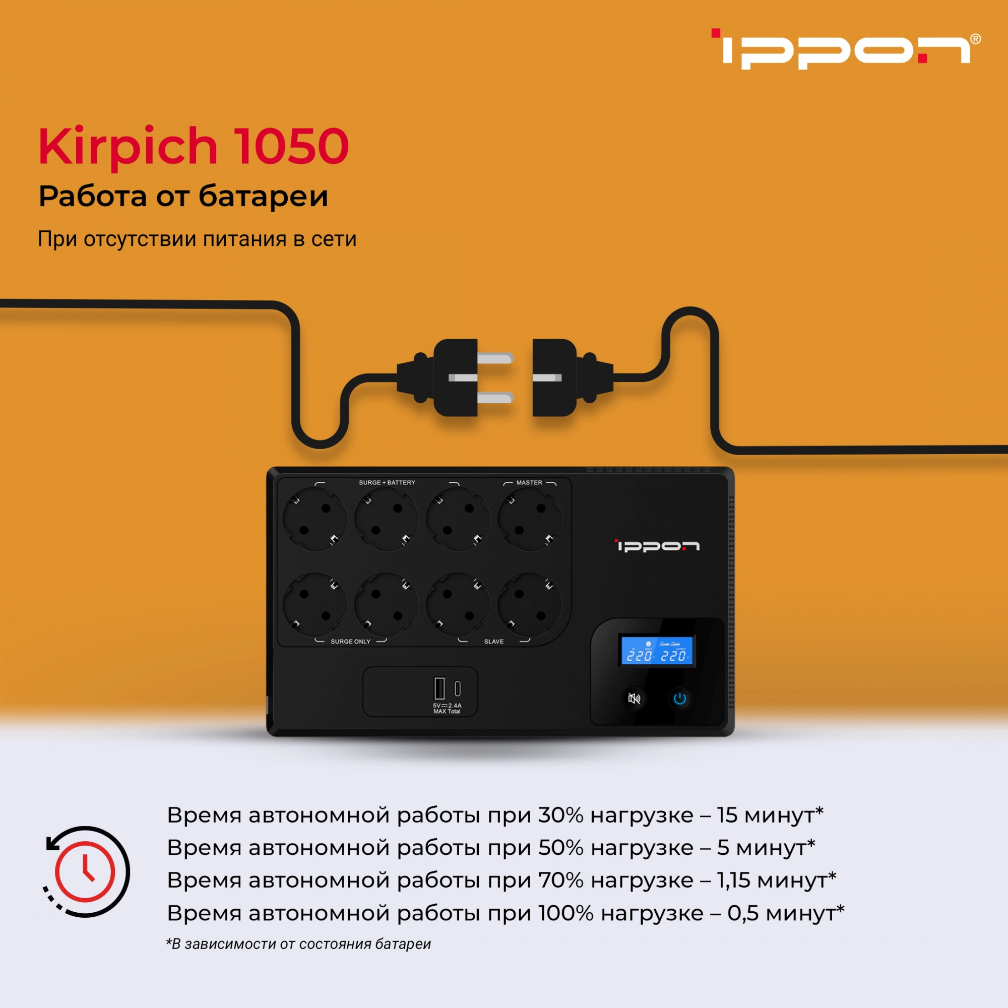 | Время автономной работы при 50% нагрузке | 4 |