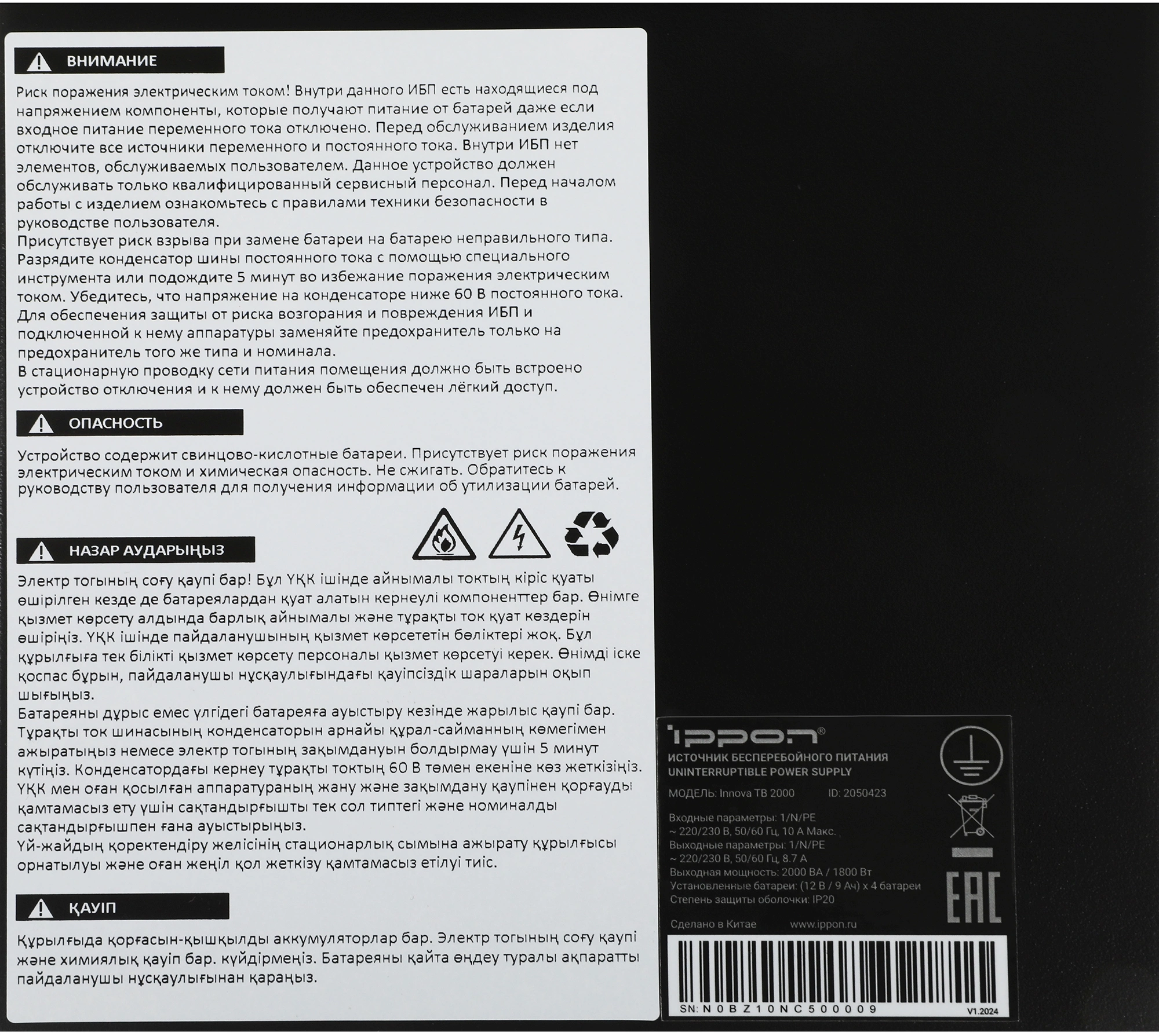 Источник бесперебойного питания Ippon Innova TB 2000 1800Вт 2000ВА черный