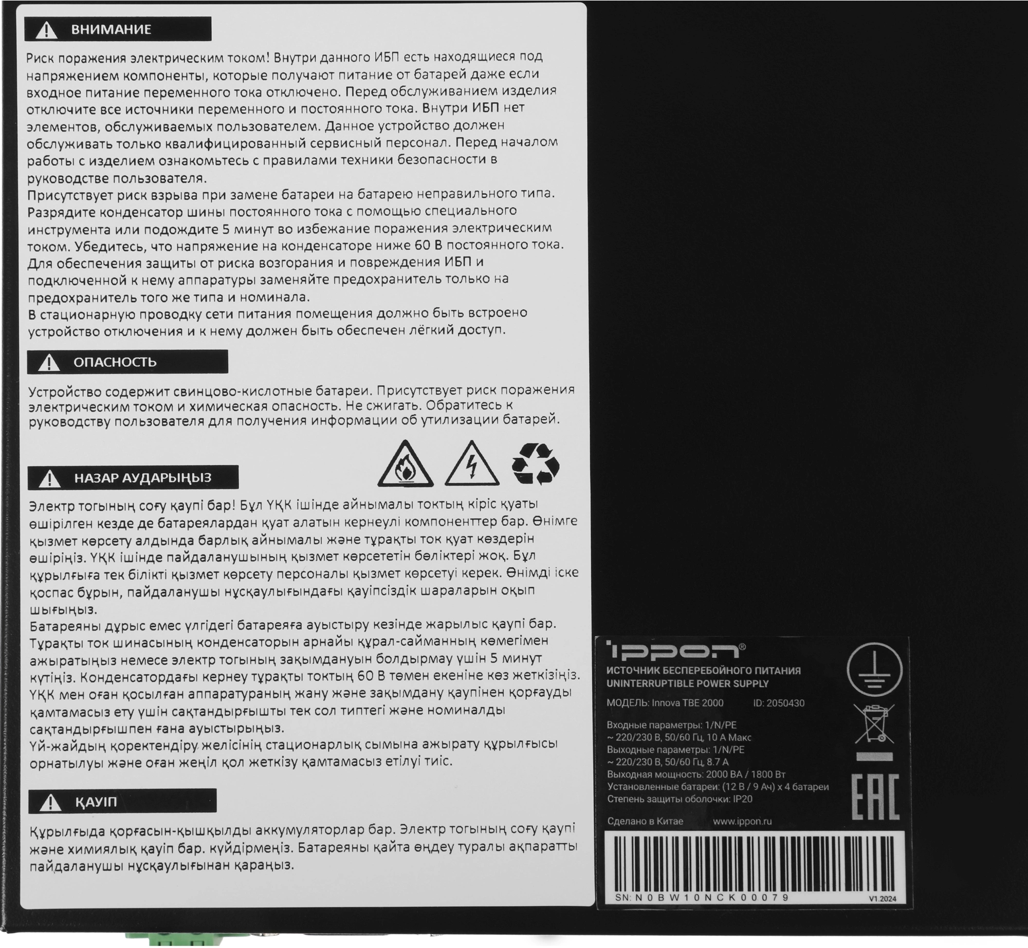 Источник бесперебойного питания Ippon Innova TBE 2000 1800Вт 2000ВА черный