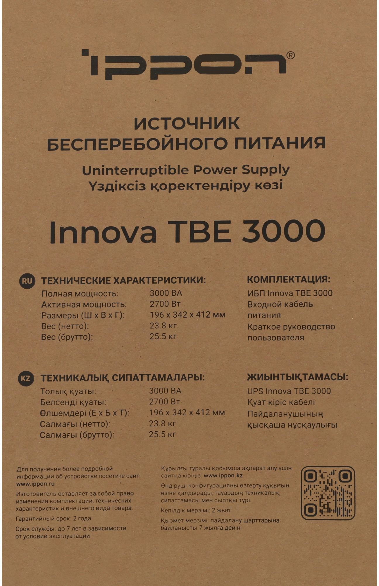 Источник бесперебойного питания Ippon Innova TBE 3000 2700Вт 3000ВА черный