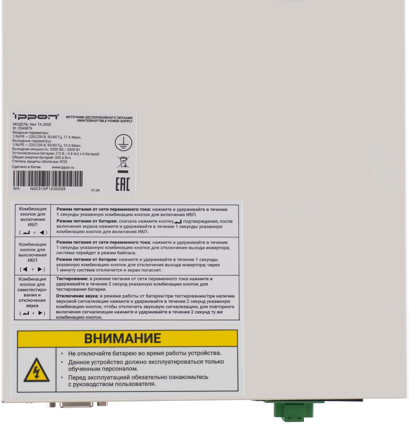 Источник бесперебойного питания Ippon Na+ TA 2000 2000Вт 2000ВА белый