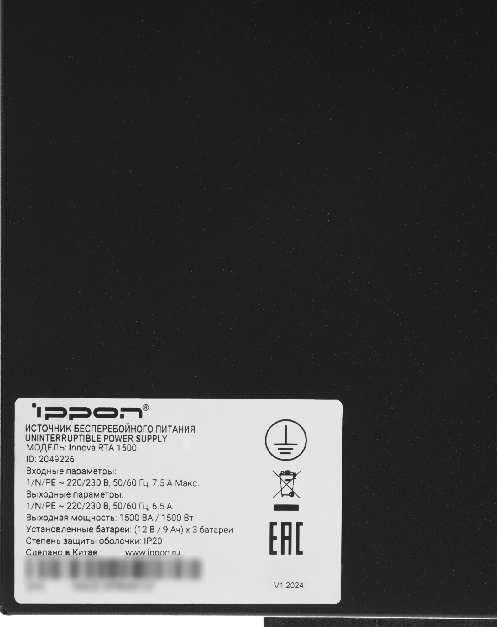 Источник бесперебойного питания Ippon Innova RTA 1500 1500Вт 1500ВА черный